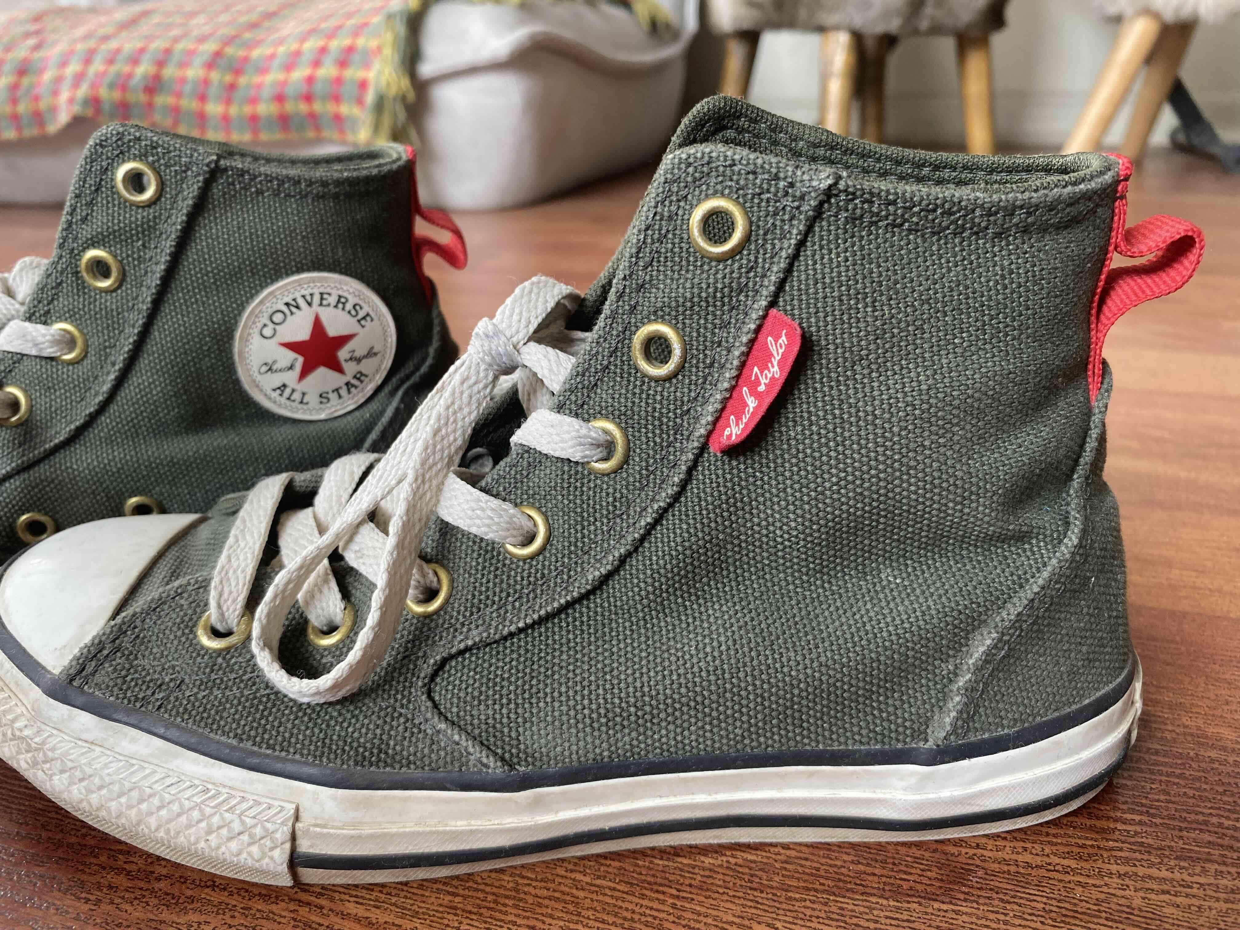 Clásicas zapatillas Converse de lona verde en buen estado, perfectas para uso diario. Estilo urbano y casual. Talla 35