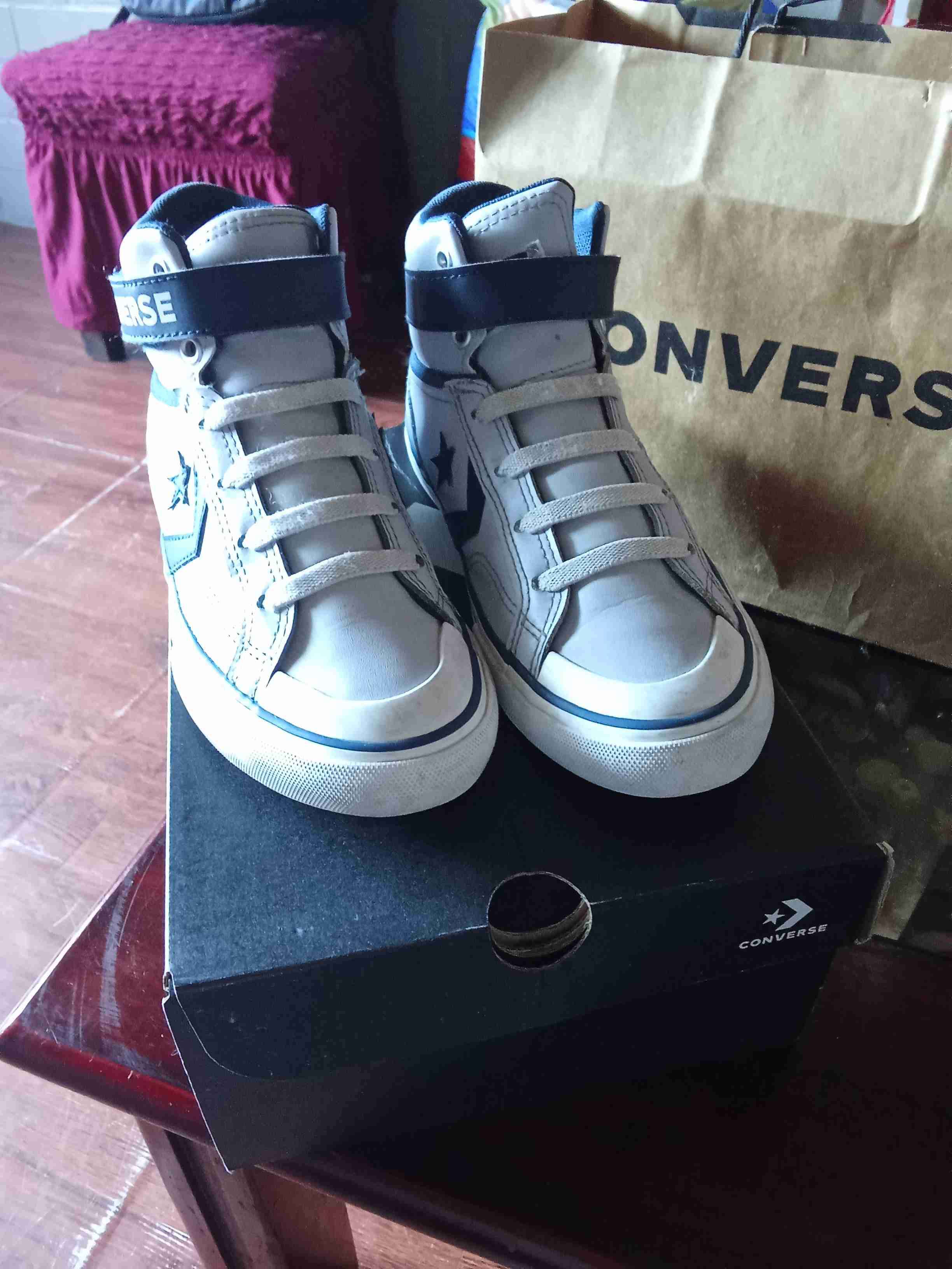 Zapatillas Converse celestes claro de caña alta, perfectas para un look urbano. Se ven en buen estado general NRO 35 son material cuero