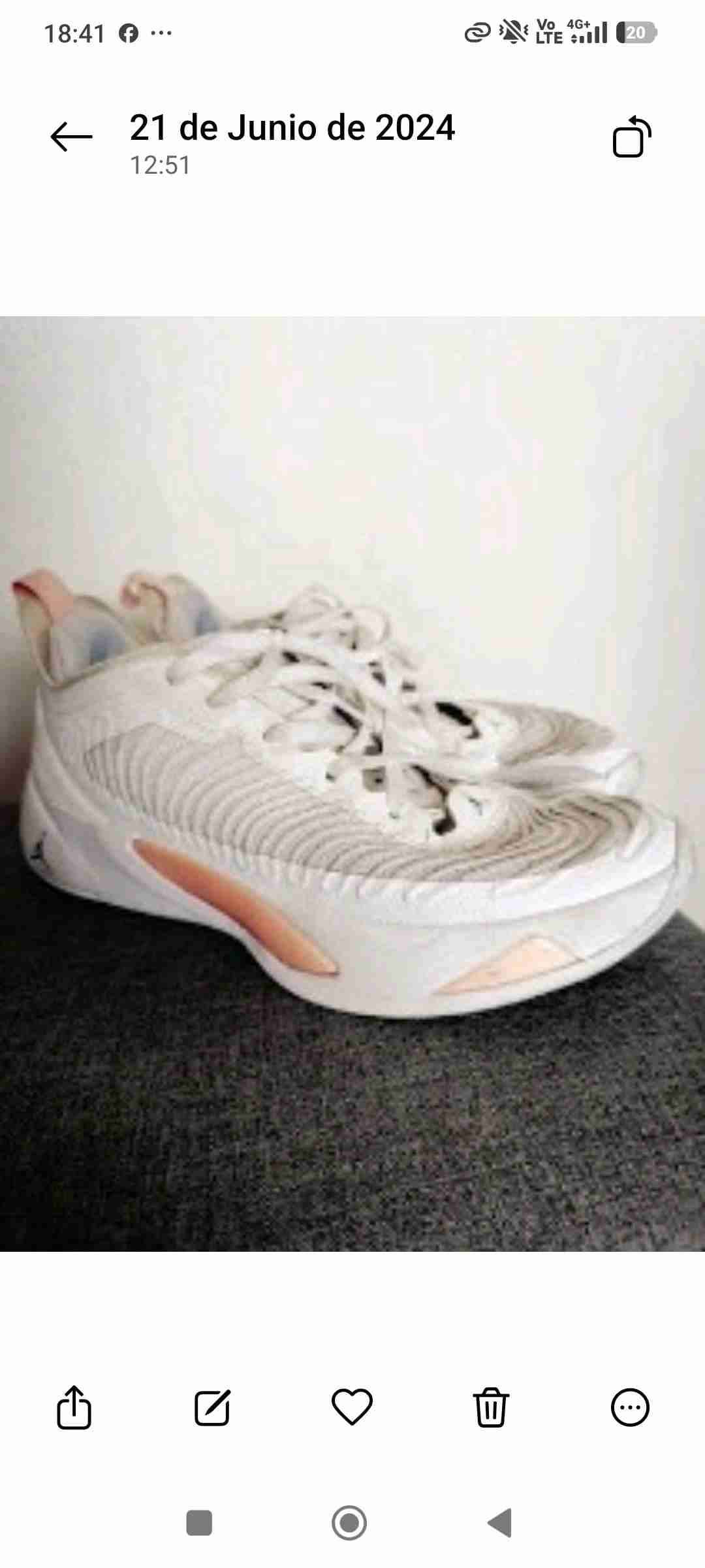 Zapatillas deportivas blancas con detalles en color, en buen estado. Perfectas para actividades informales y cómodas.