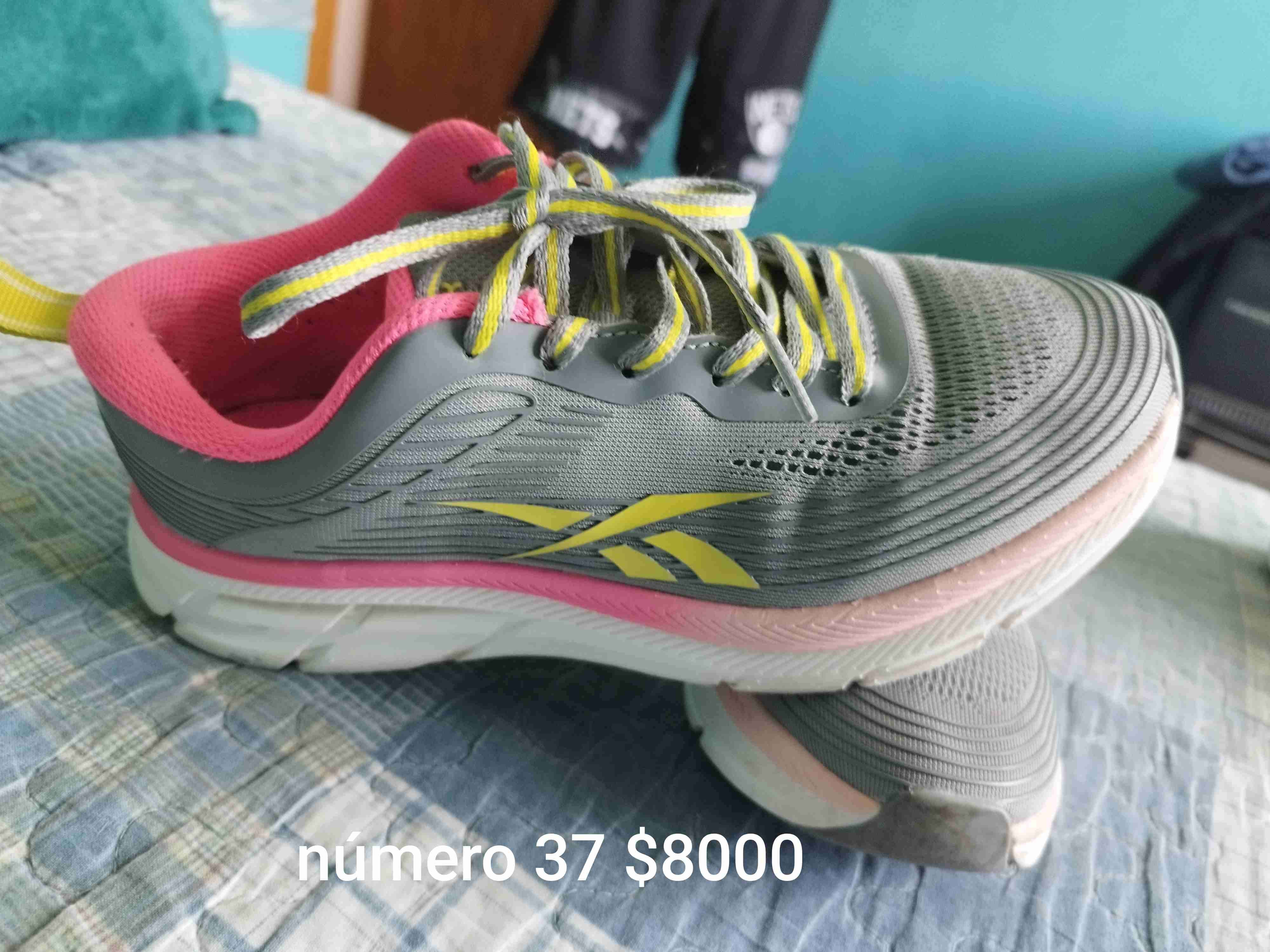 Zapatillas deportivas para mujer en tono gris con detalles rosas. Usadas en buen estado, ideales para correr o entrenar.