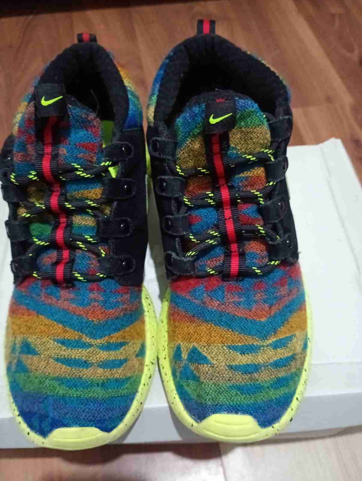 Zapatillas deportivas con diseño multicolor. En buen estado general, ideales para uso casual o deportivo.