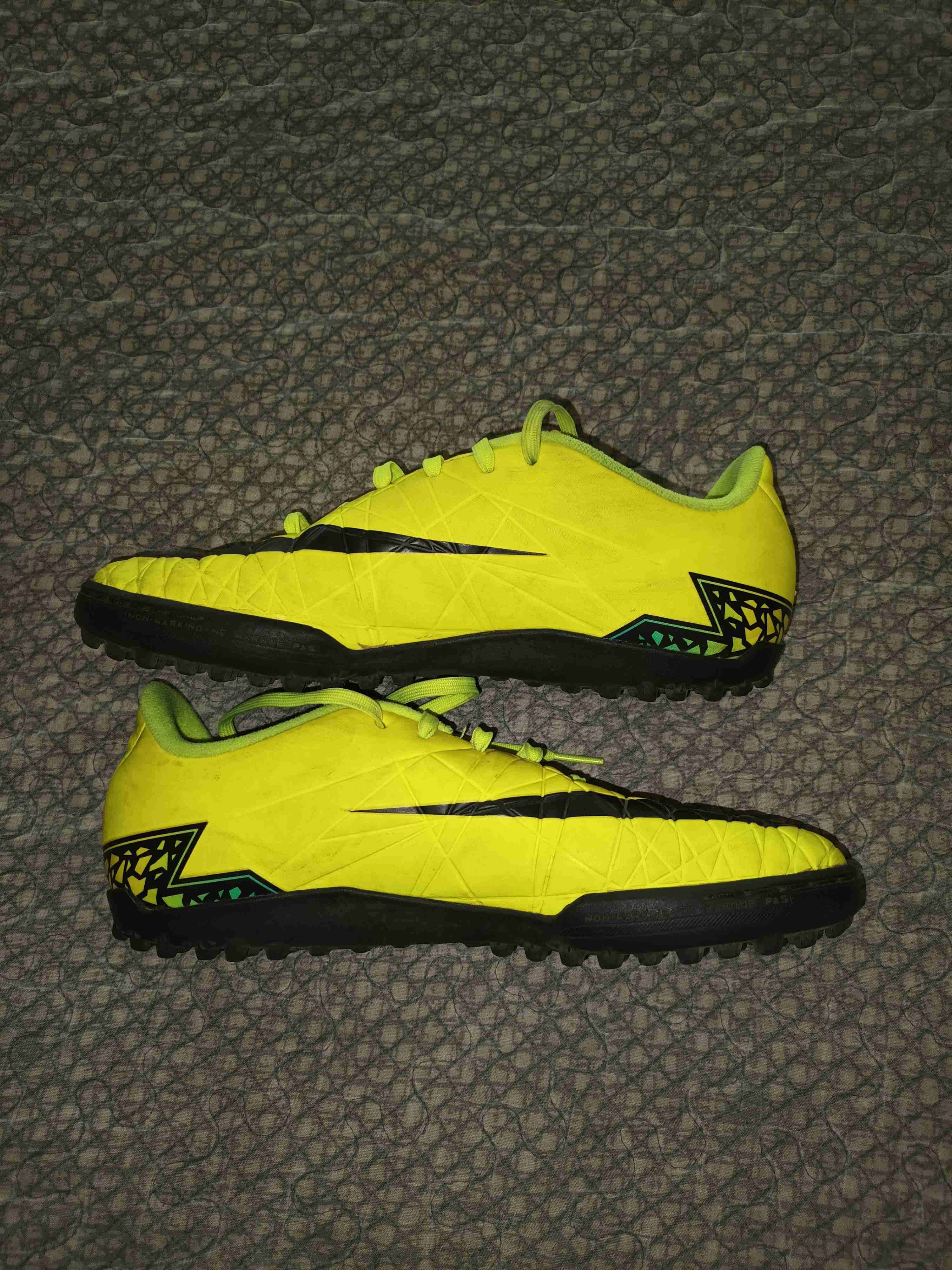 Zapatillas deportivas amarillas talla 37 Nike, en buen estado, ideales para jugar fútbol en cancha sintética.