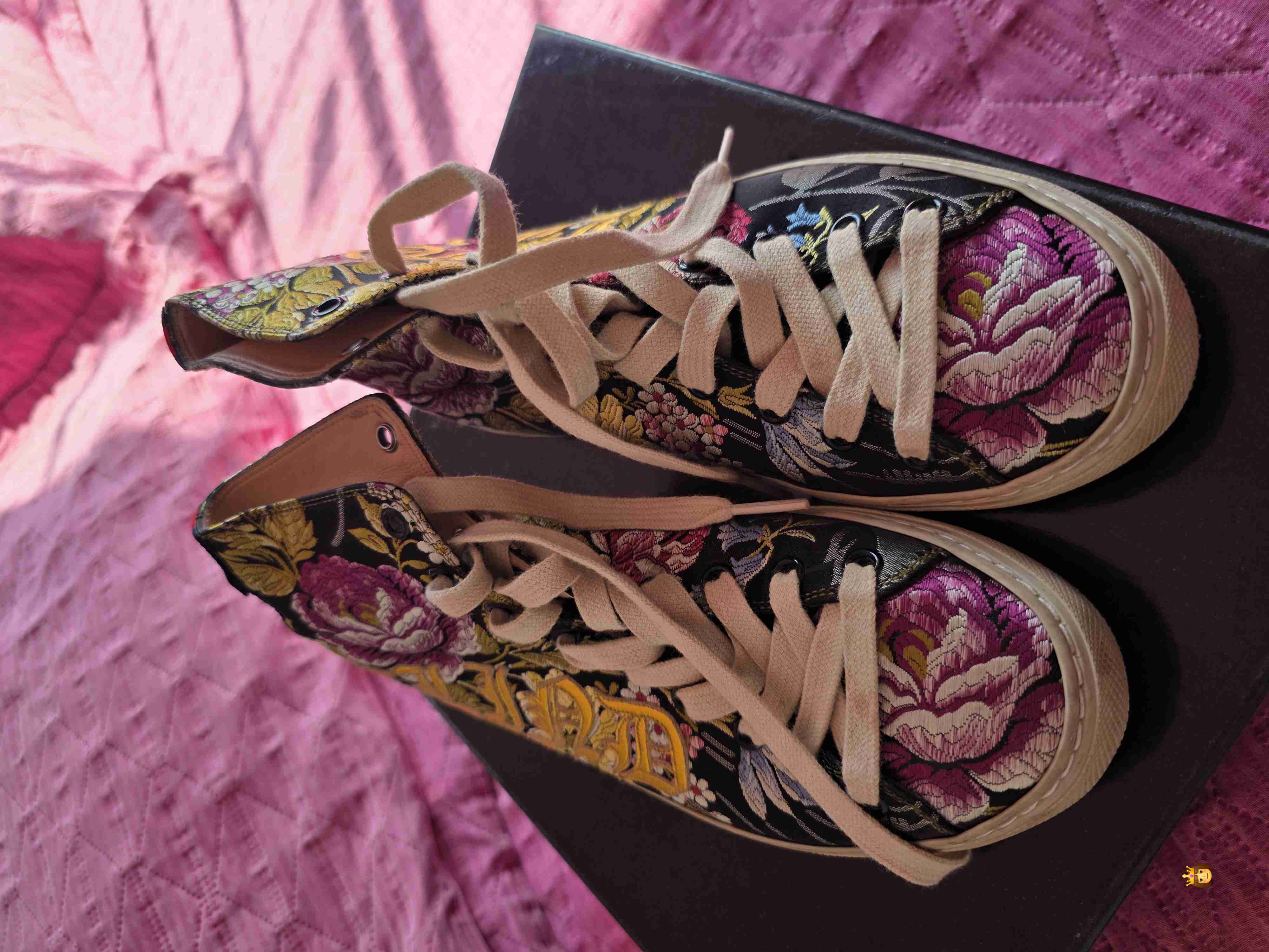 Zapatillas con estampado floral en tonos vibrantes, perfectas para un look único. En excelemre estado general, ideal para uso casual. Originales