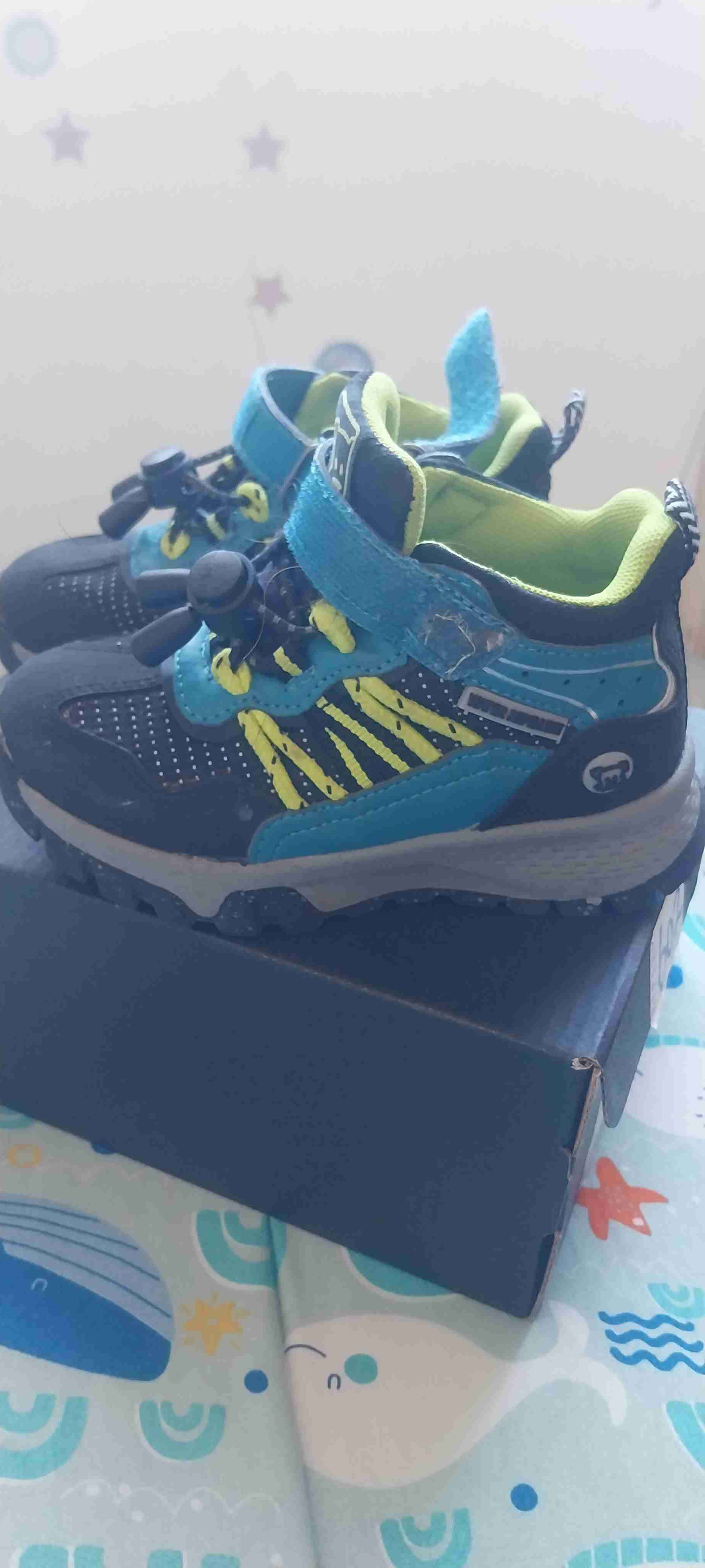 Zapatillas para niños,número 25, ideales para actividades al aire libre. Color azul con detalles en verde y amarillo, en buen estado. Marca pillin.