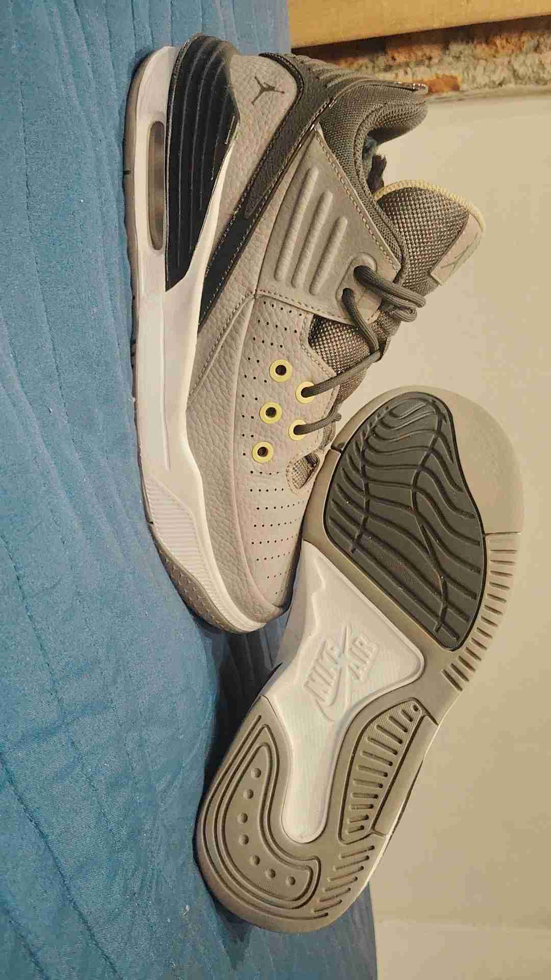 Zapatillas de deporte gris con detalles en negro y amarillo. Buen estado 9/10, ideales para el uso diario.