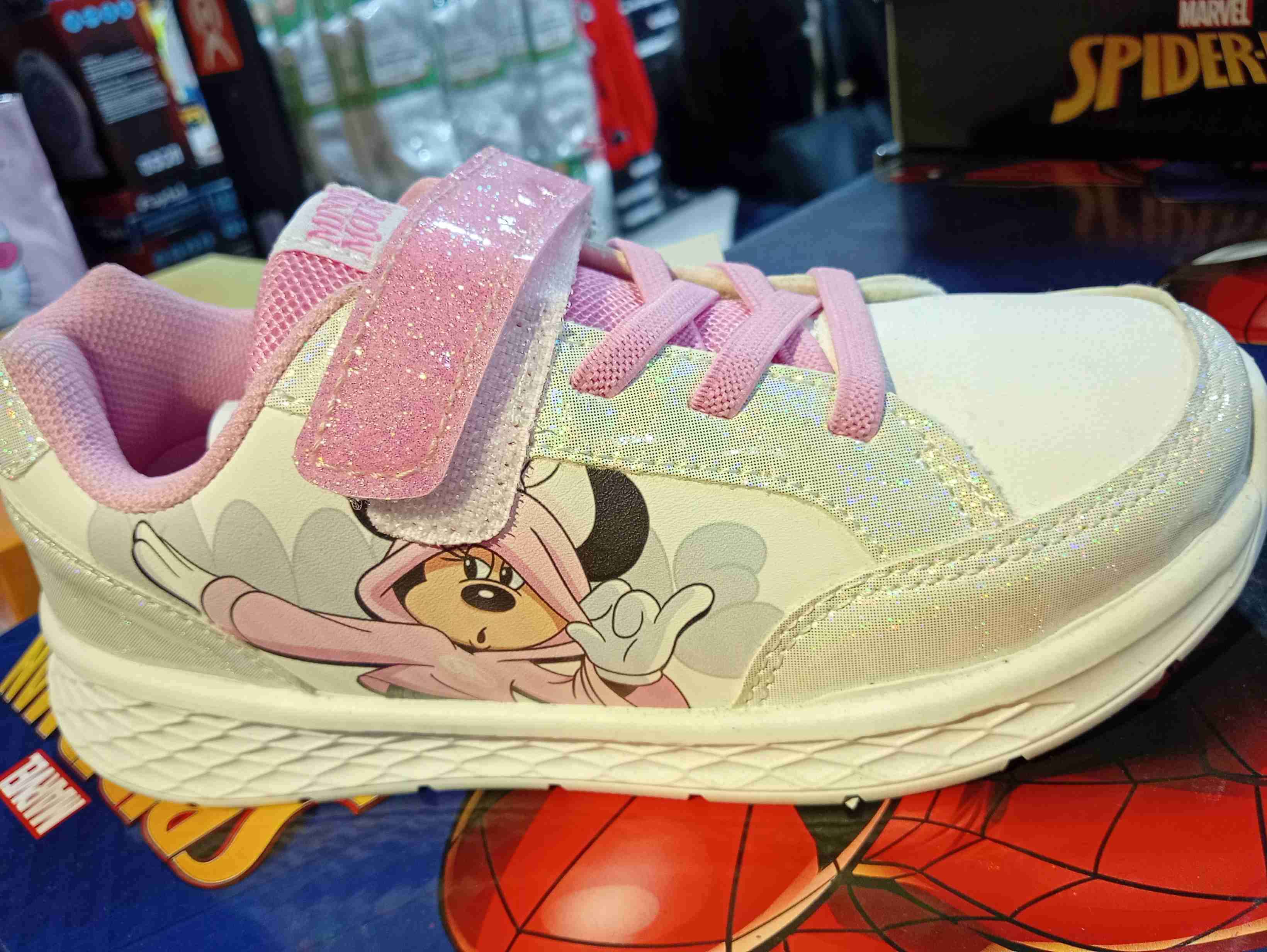 Zapatillas infantiles con diseño de Minnie. Colores rosados y detalles brillantes. Perfectas para uso diario. Marca Moletto