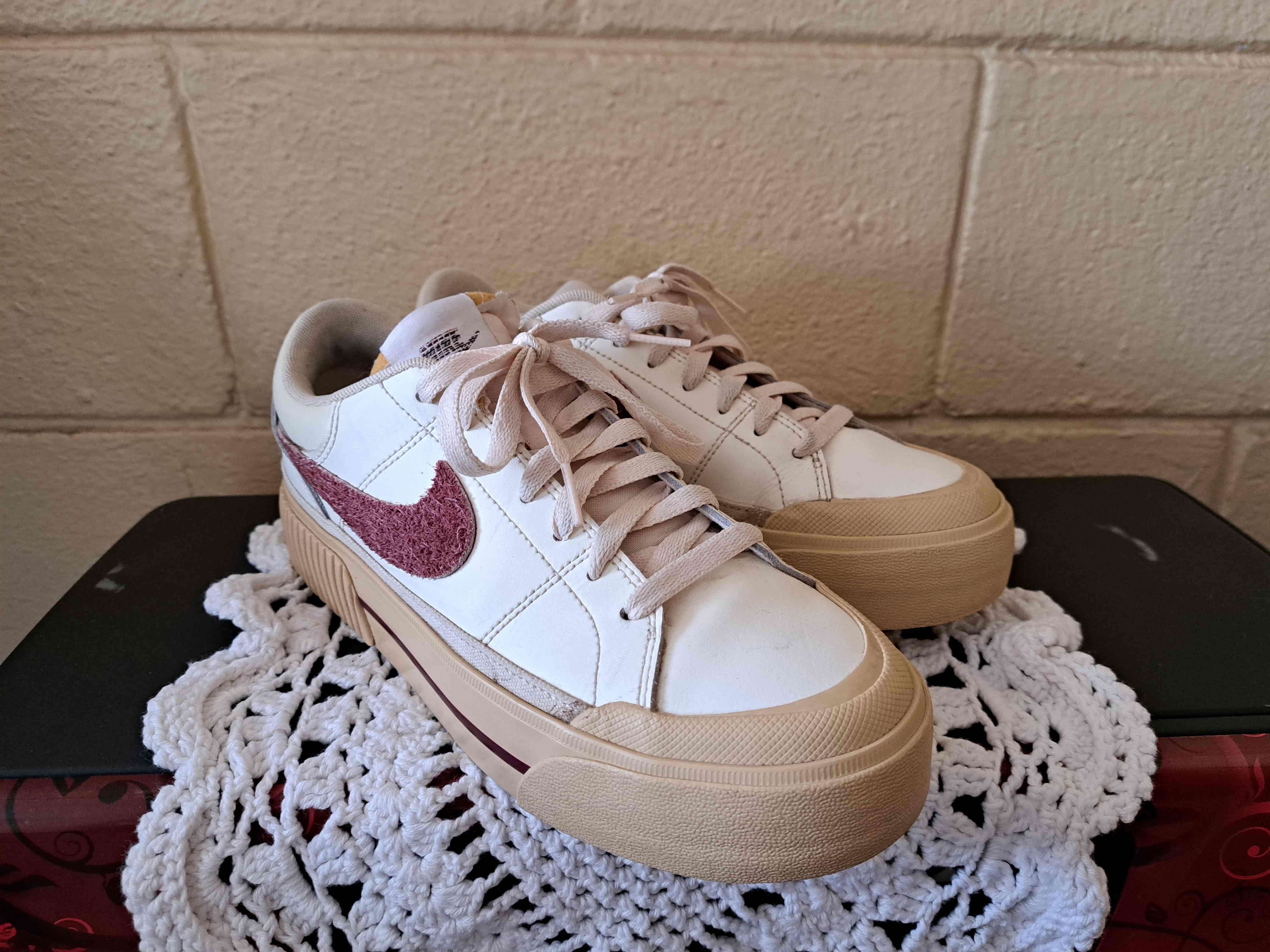 Zapatillas cxolor crema ccon logo burdeo. En buen estado, con leves signos de uso. Precio conversable.
