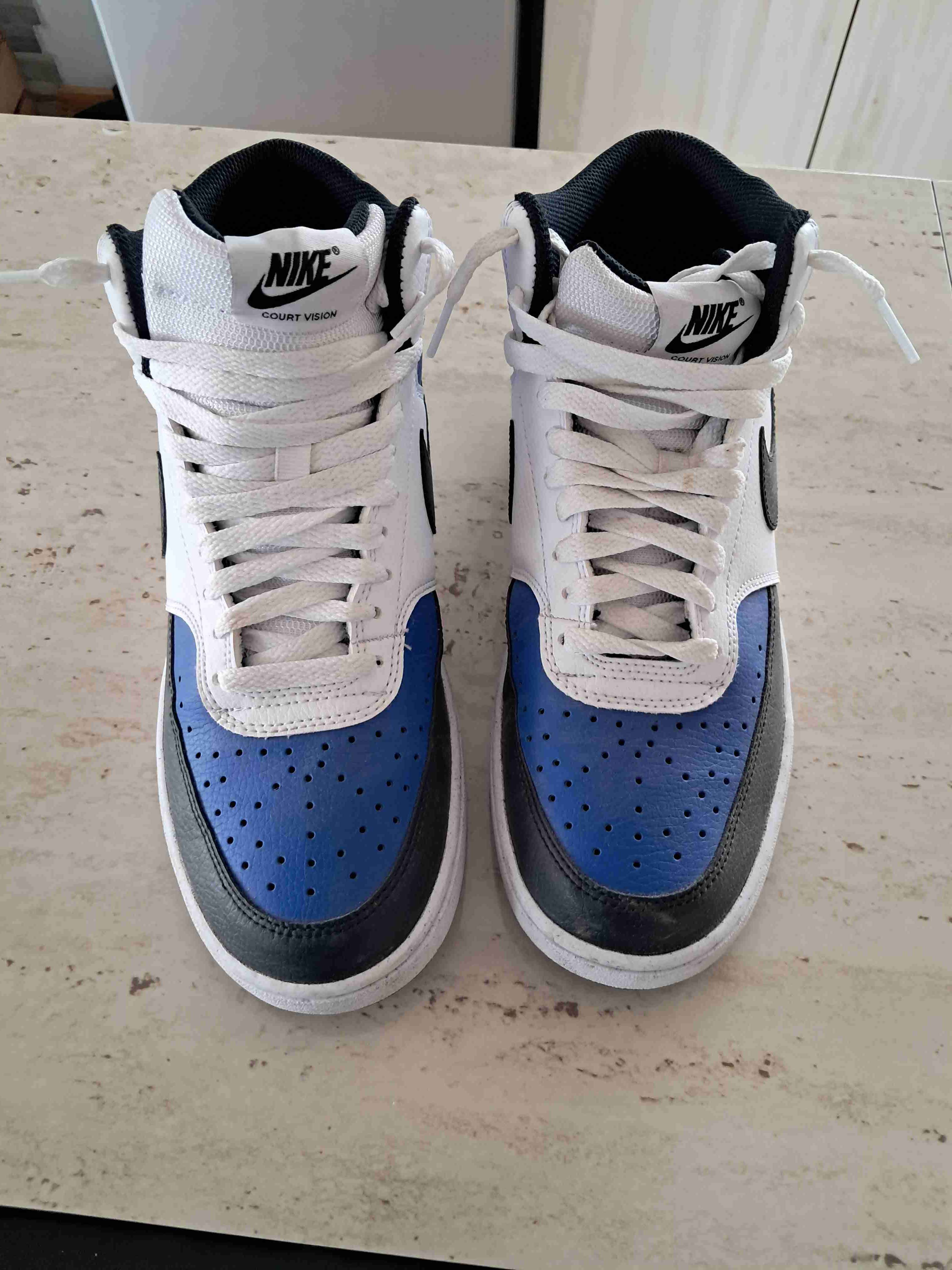Zapatillas deportivas en tonos blanco y azul. En buen estado, ideales para uso casual o deportivo.