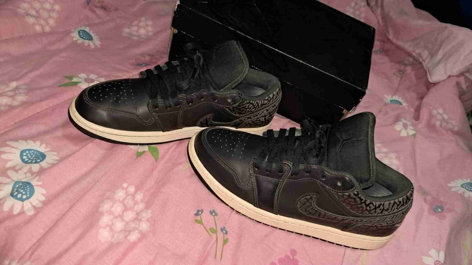 Zapatillas negras en buen estado, con patrones únicos. Ideales para un look casual y moderno.