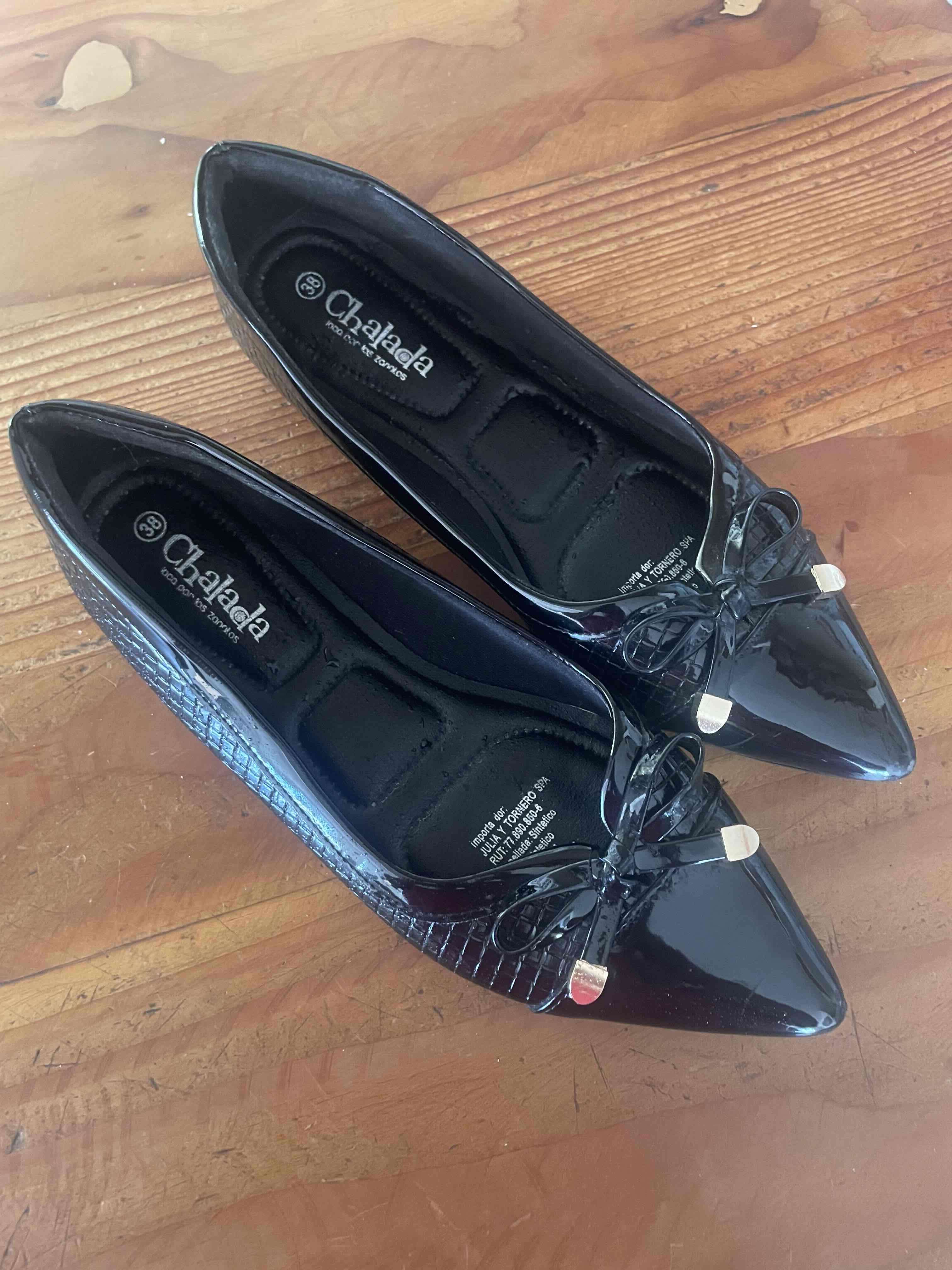 Zapato Mujer Casual Mercnew-1 Color Negro de Capellada Sintetico con Forro Textil y Planta de Goma Marca Chalada. Talla 38. Revisar tabla de medidas. *Detalle en punta, revisar foto. Zapatos planos en buen estado, negros y elegantes con detalle de lazo. Ideales para eventos casuales o formales.