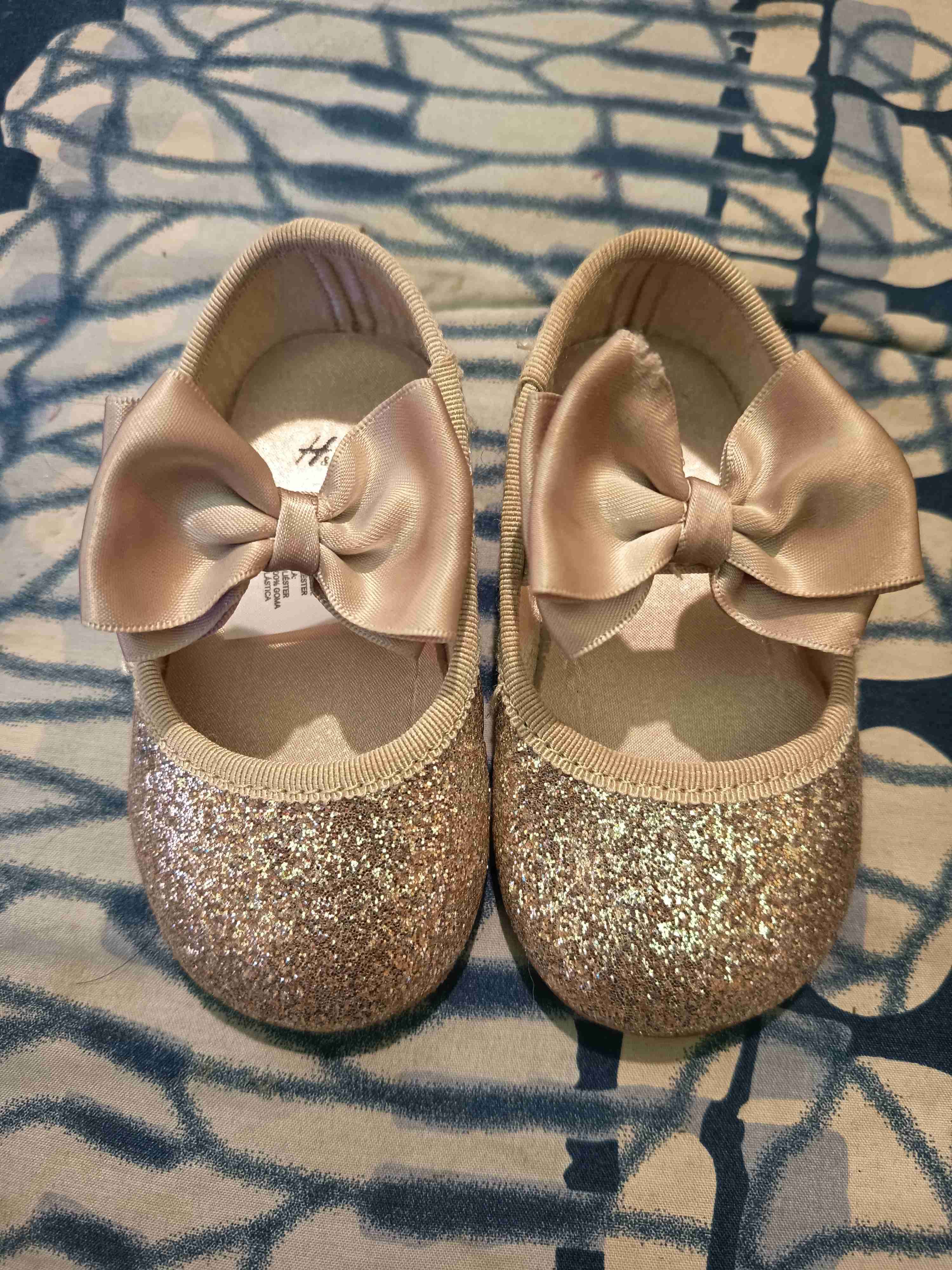 Zapatos brillantes para bebé con lazo elegante. Perfectos para ocasiones especiales. En buen estado.