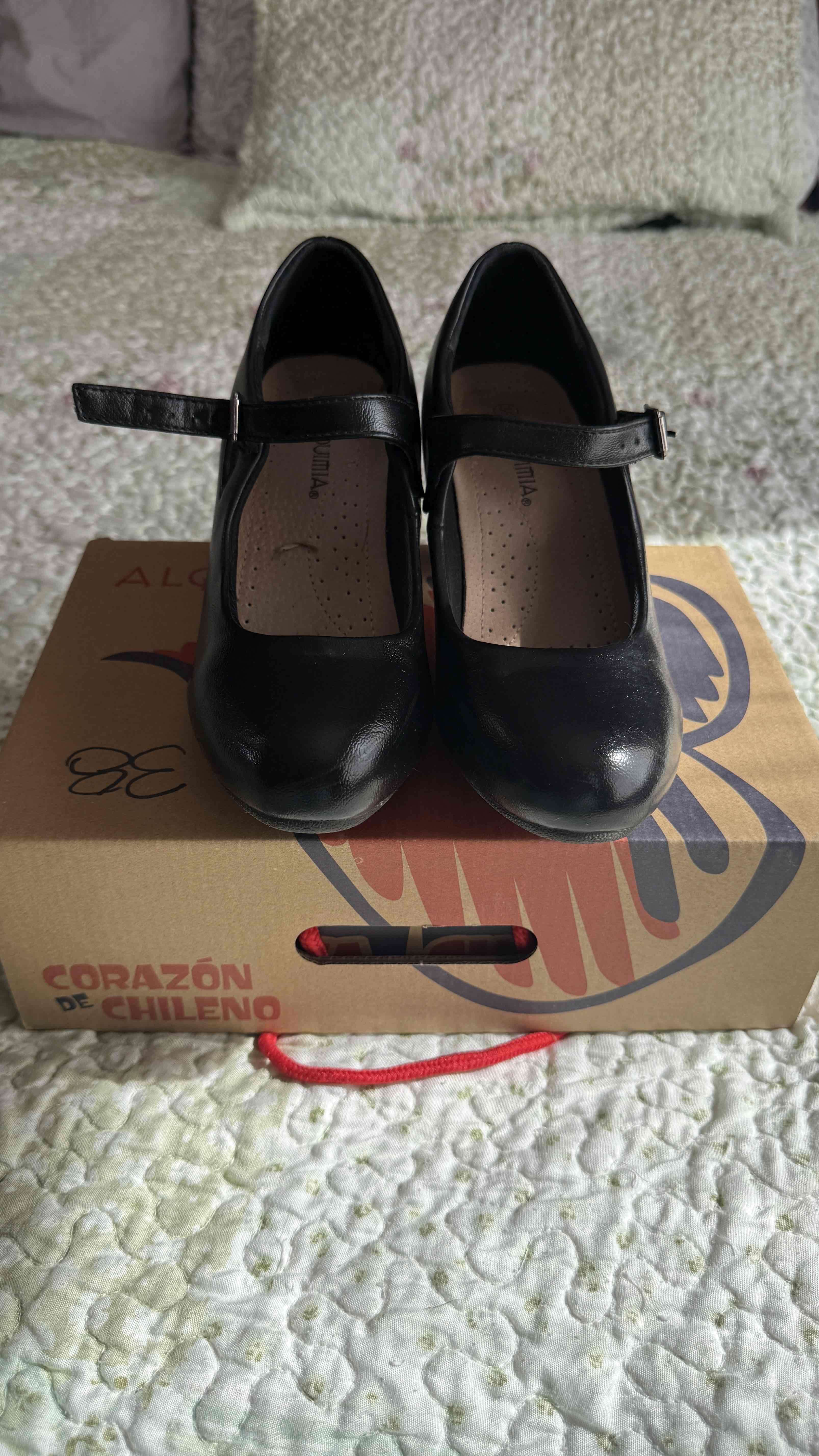 Zapatos de mujer negros, estilo clásico con hebilla, en buen estado.