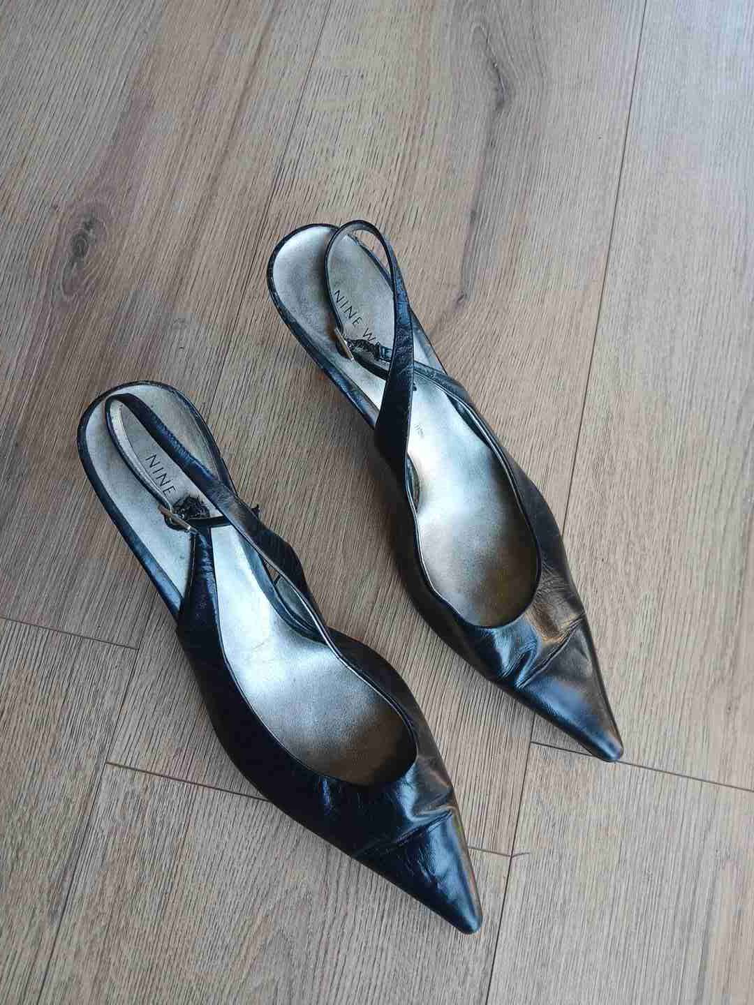 Elegantes zapatos de charol negros, perfectos para ocasiones formales. En buen estado con algunos signos de uso. Altura de taco muy cómodo. Marca Nine West.
