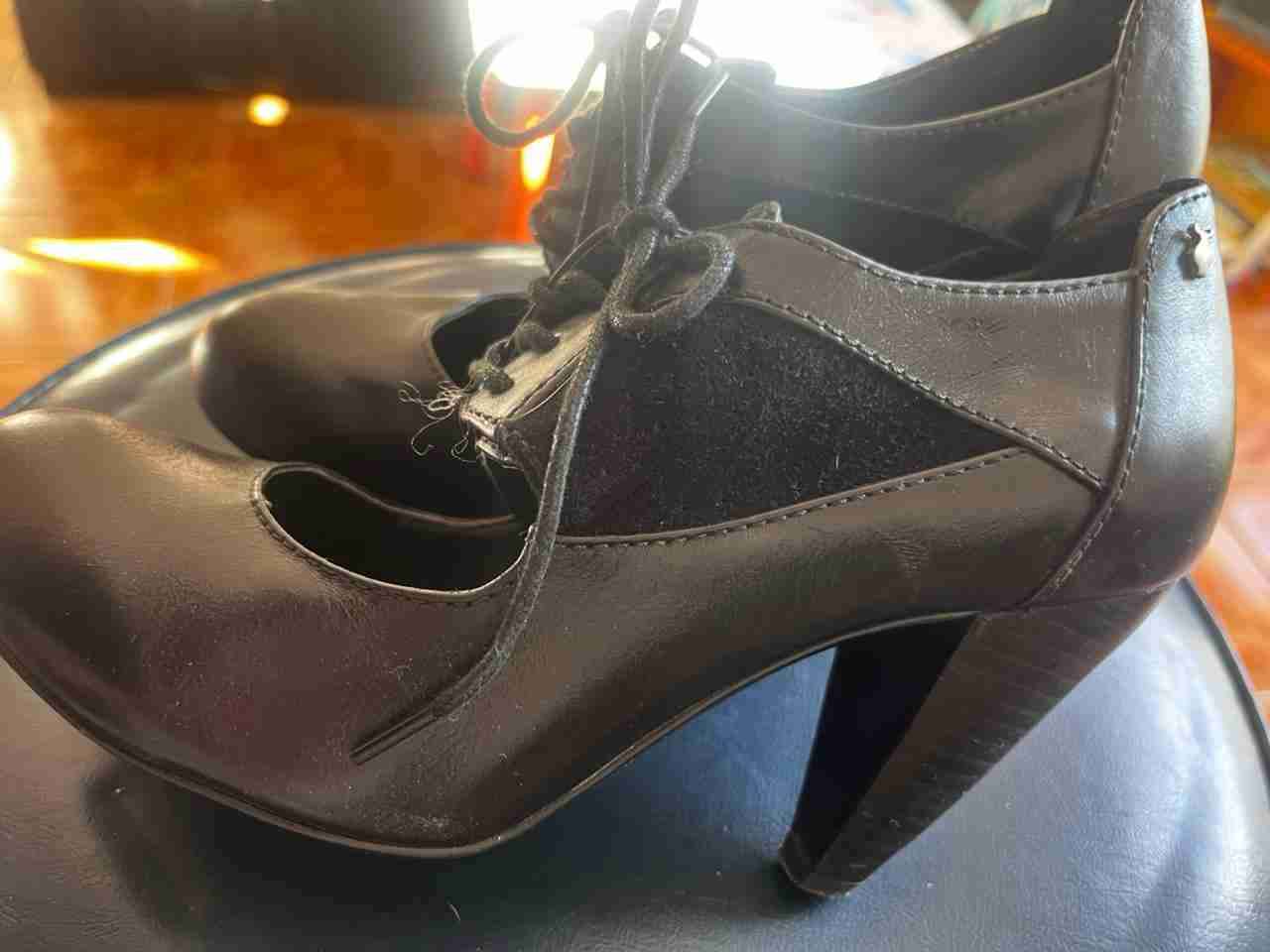 Zapatos de cuero natural, de tacón en buen estado, ideales para eventos formales. Destacan por su diseño clásico y elegante.