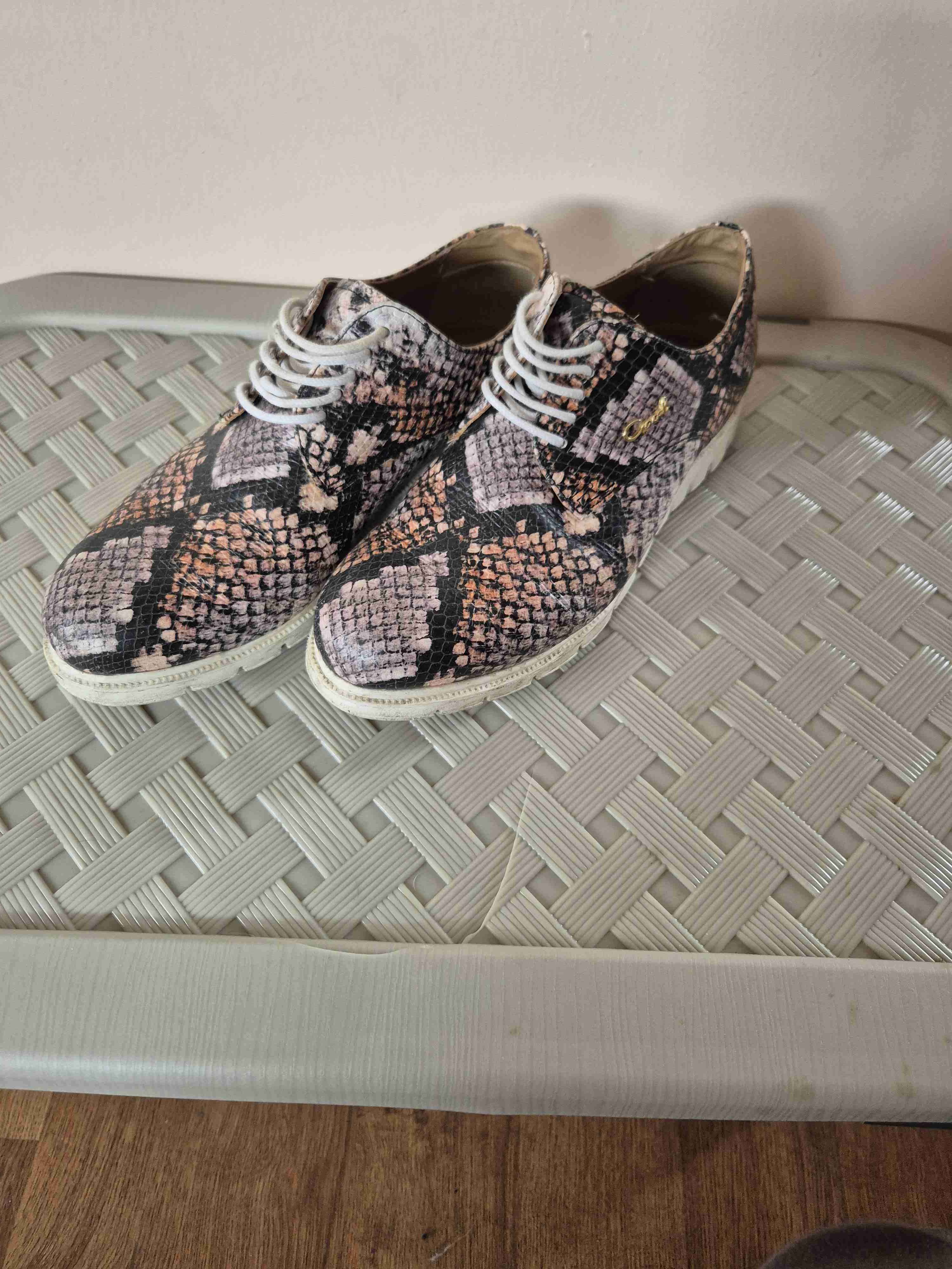 Zapatos de vestir con estampado de serpiente y cordones blancos. Perfectos para un estilo audaz y elegante. Talla 35.