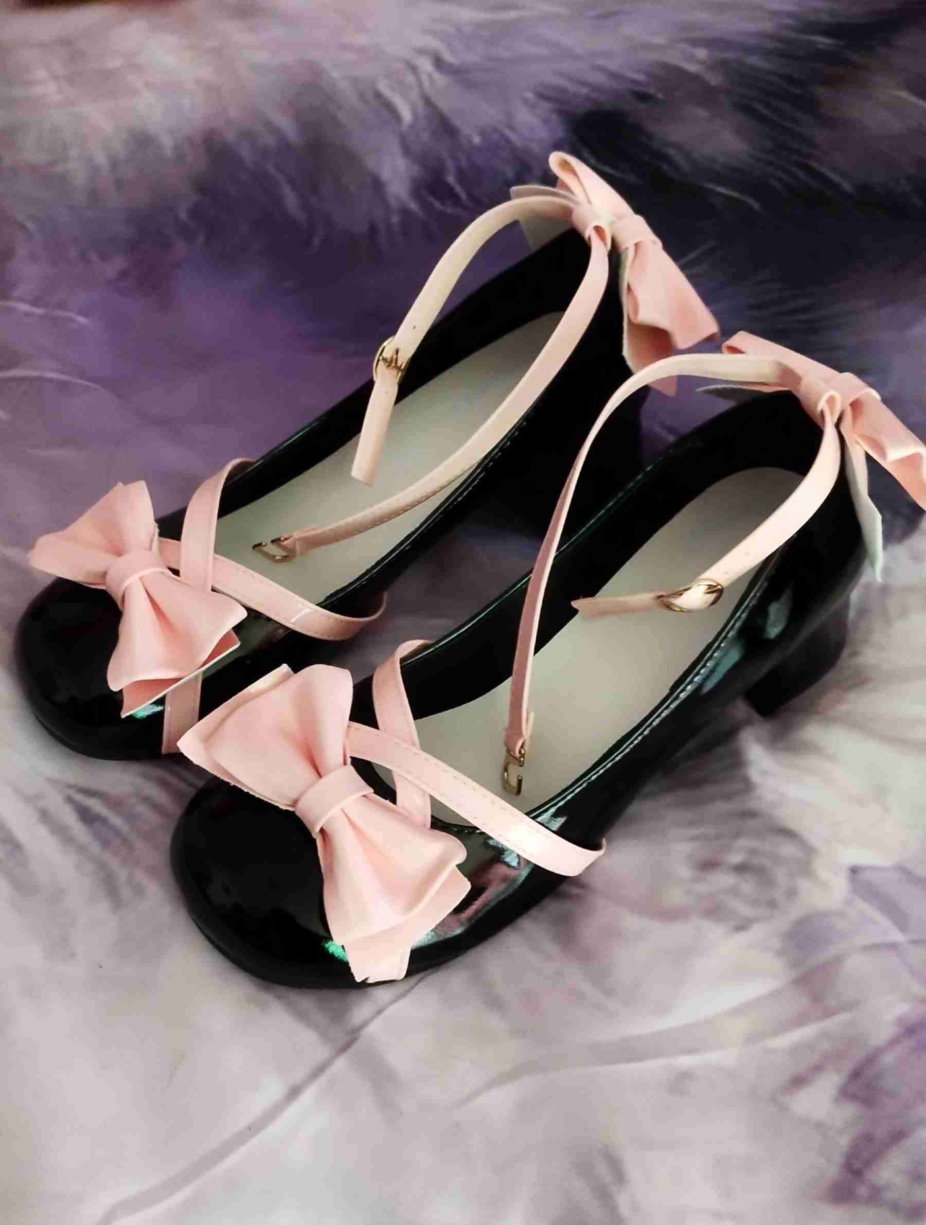 Hermosos zapatos negros de charol con lazos rosa pastel. Talla 37 Nuevos Planta 23.5 cm