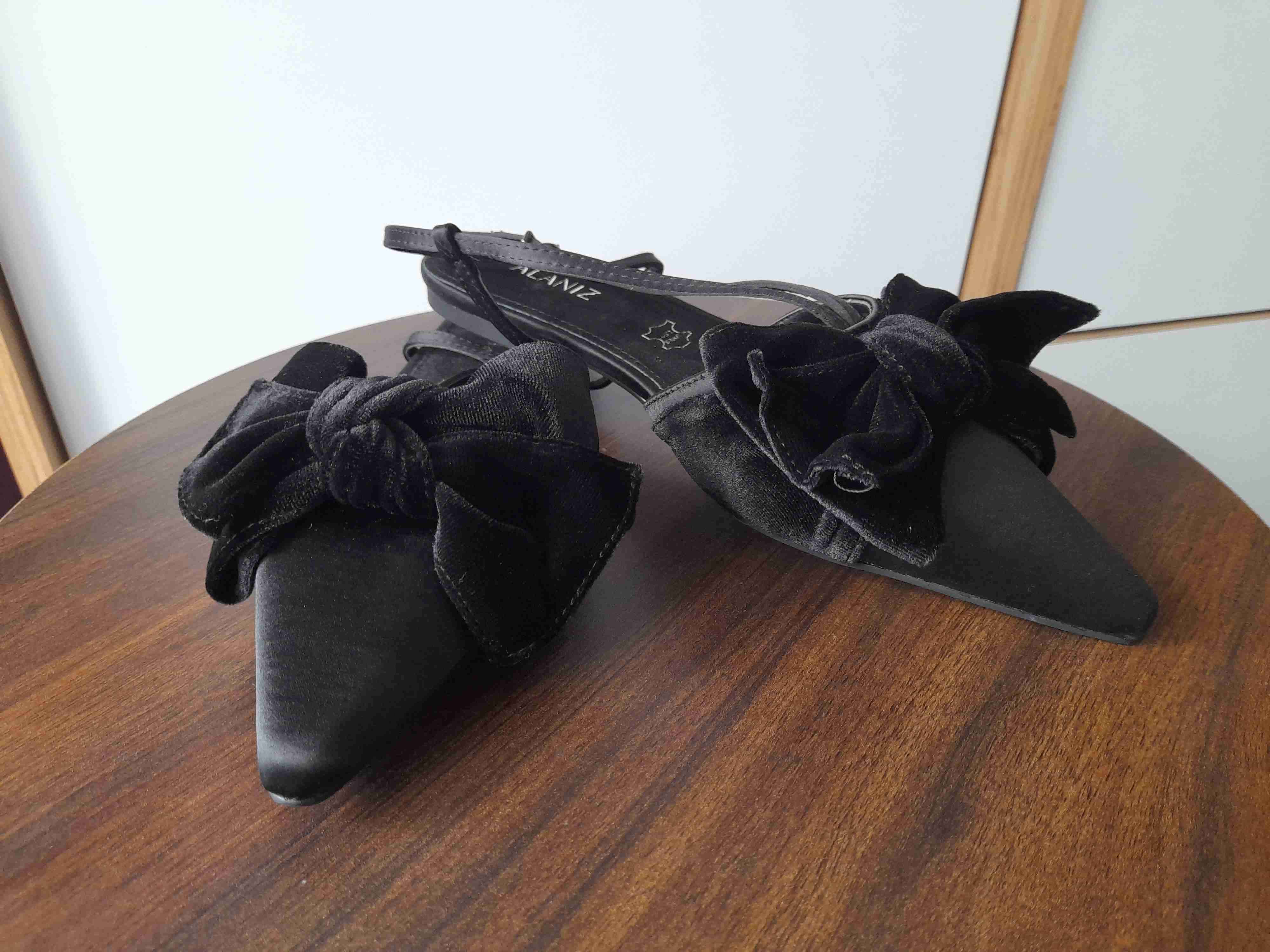Zapatos de punta fina con lazo de terciopelo, perfectos para ocasiones especiales. Nuevos, en perfecto estado y en su caja original