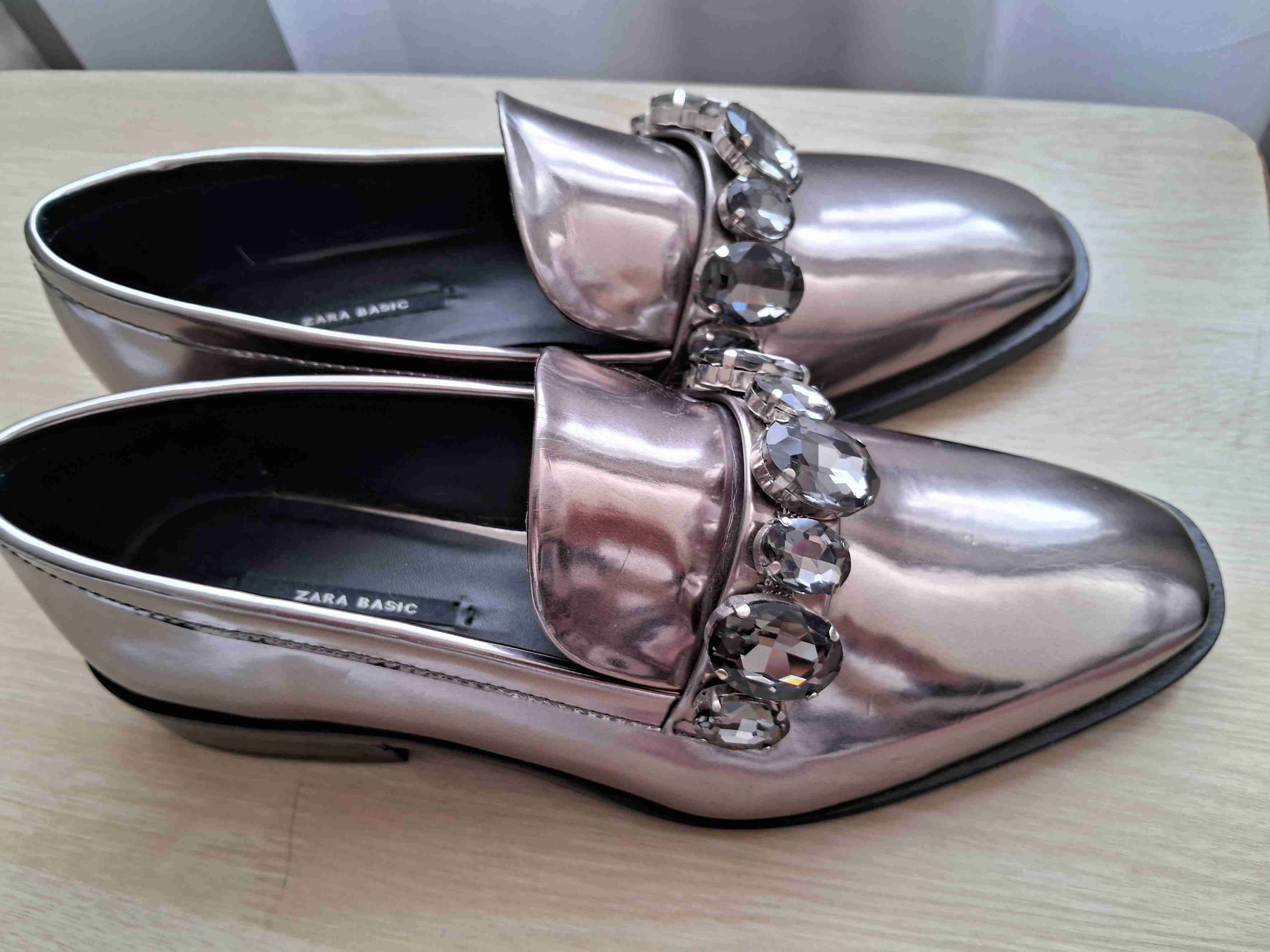 Zapatos plateados con apliques Zara