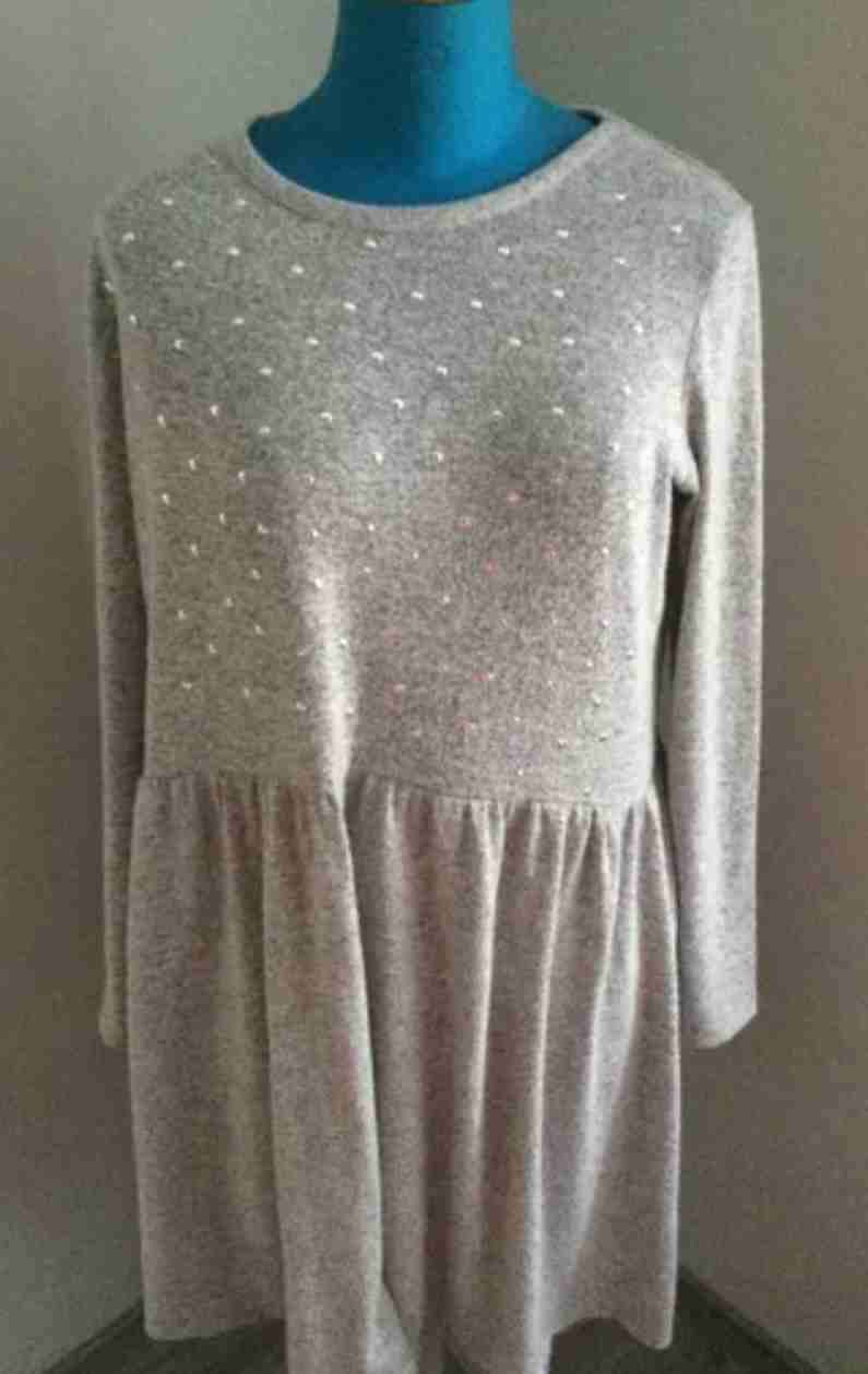 Vestido largo de color beige, con tachuelas plateadas. Perfecto para un look casual y cómodo. En excelente estado, con mínimos signos de uso.