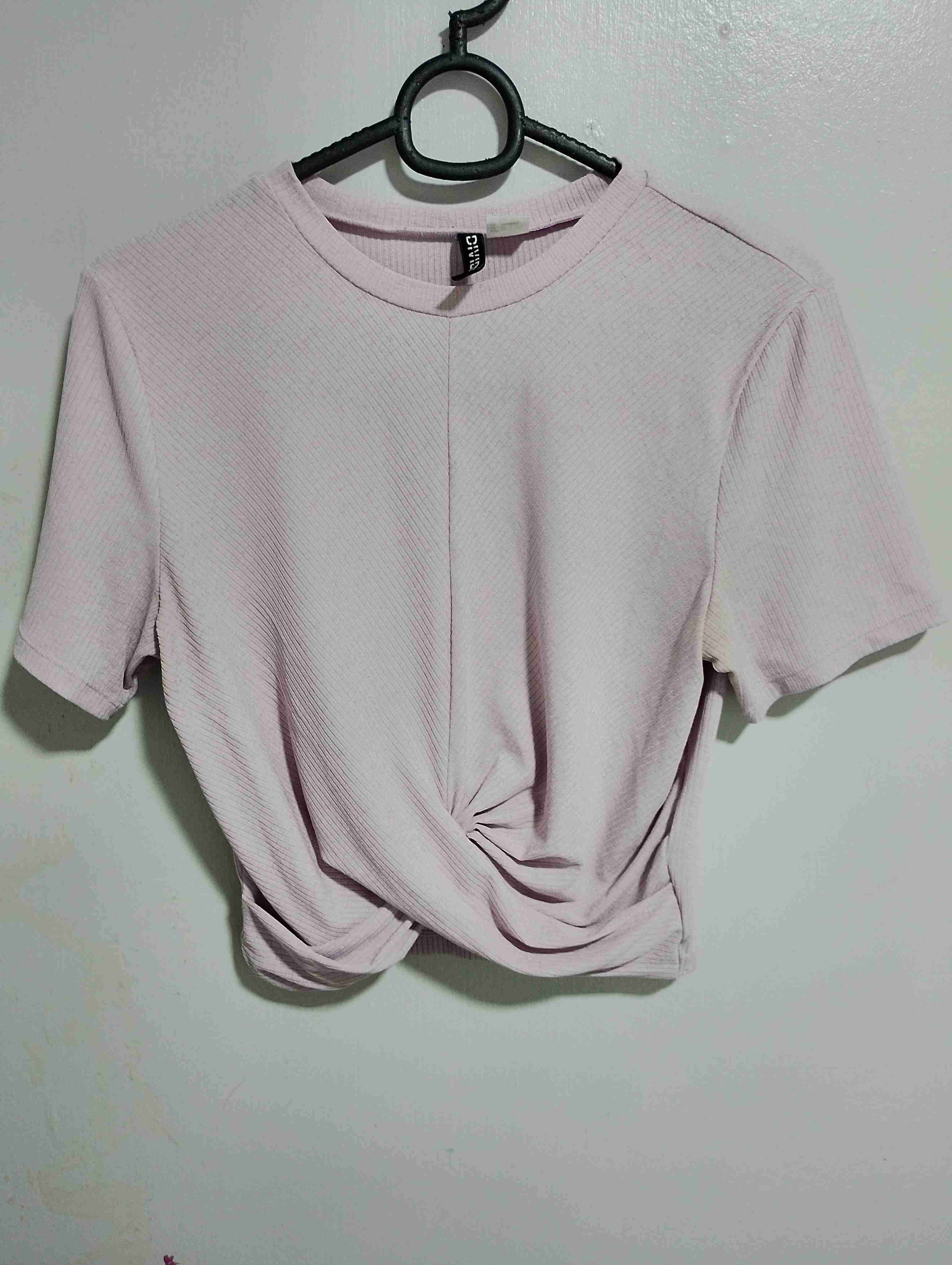 Polera estilo crop top lavanda, detalle torcido al frente. Ideal para looks casuales. Buen estado general.