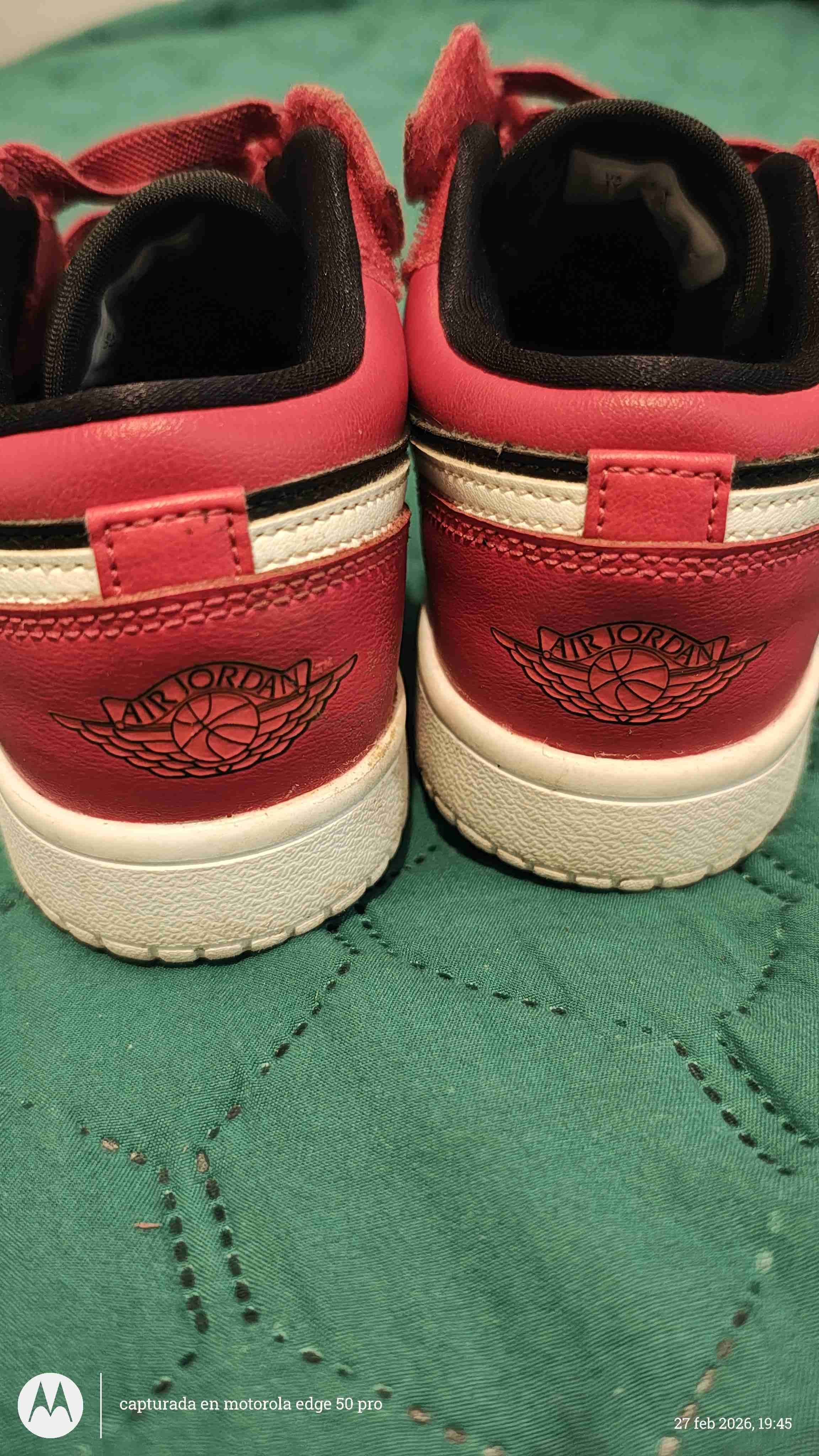 Zapatillas deportivas Air Jordan en color rojo con detalles negros y blancos. Buen estado, ideal para uso diario o deportes.