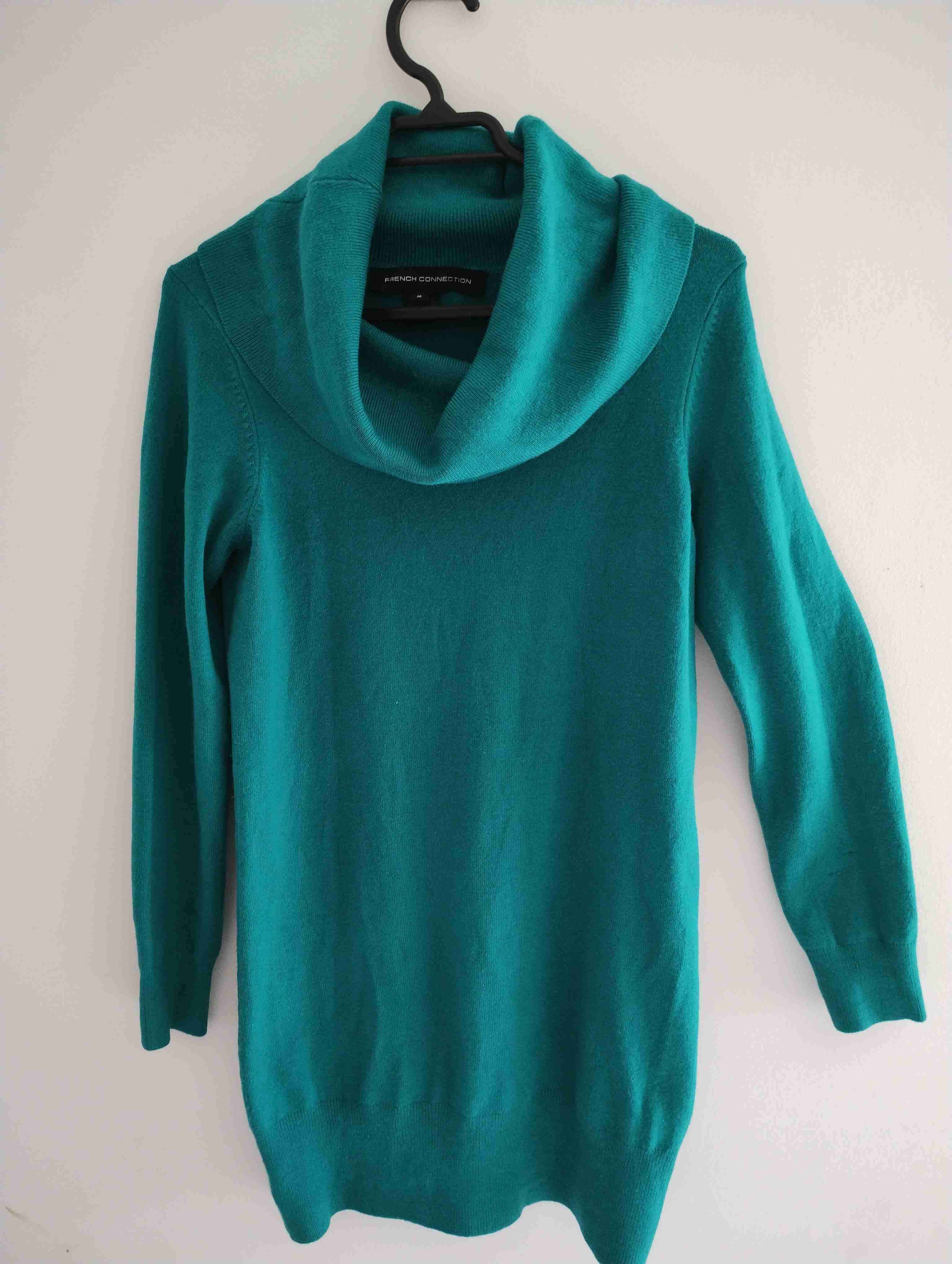 Sweater color turquesa con diseño de cuello ancho. Ideal para días fríos. En buen estado general.