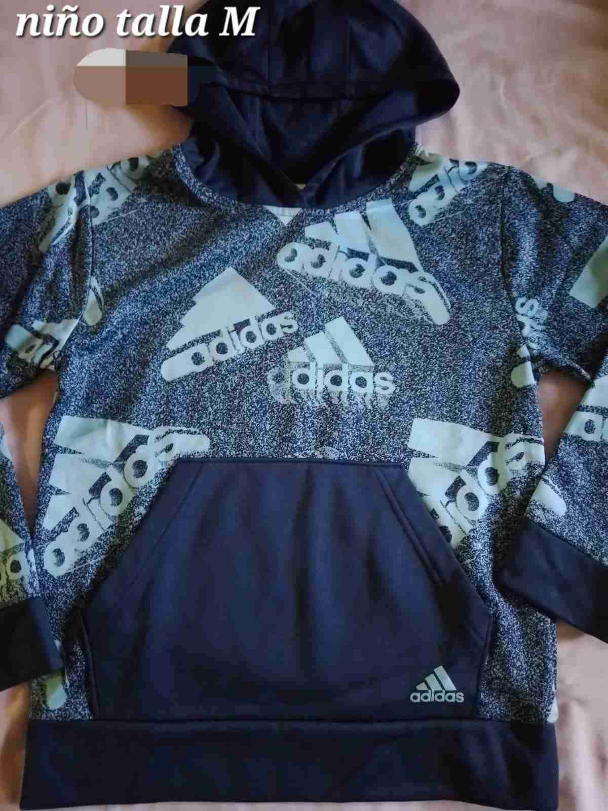 Polerón Adidas para niño, talla M. Perfecto para días fríos, en buen estado, con estilo deportivo.