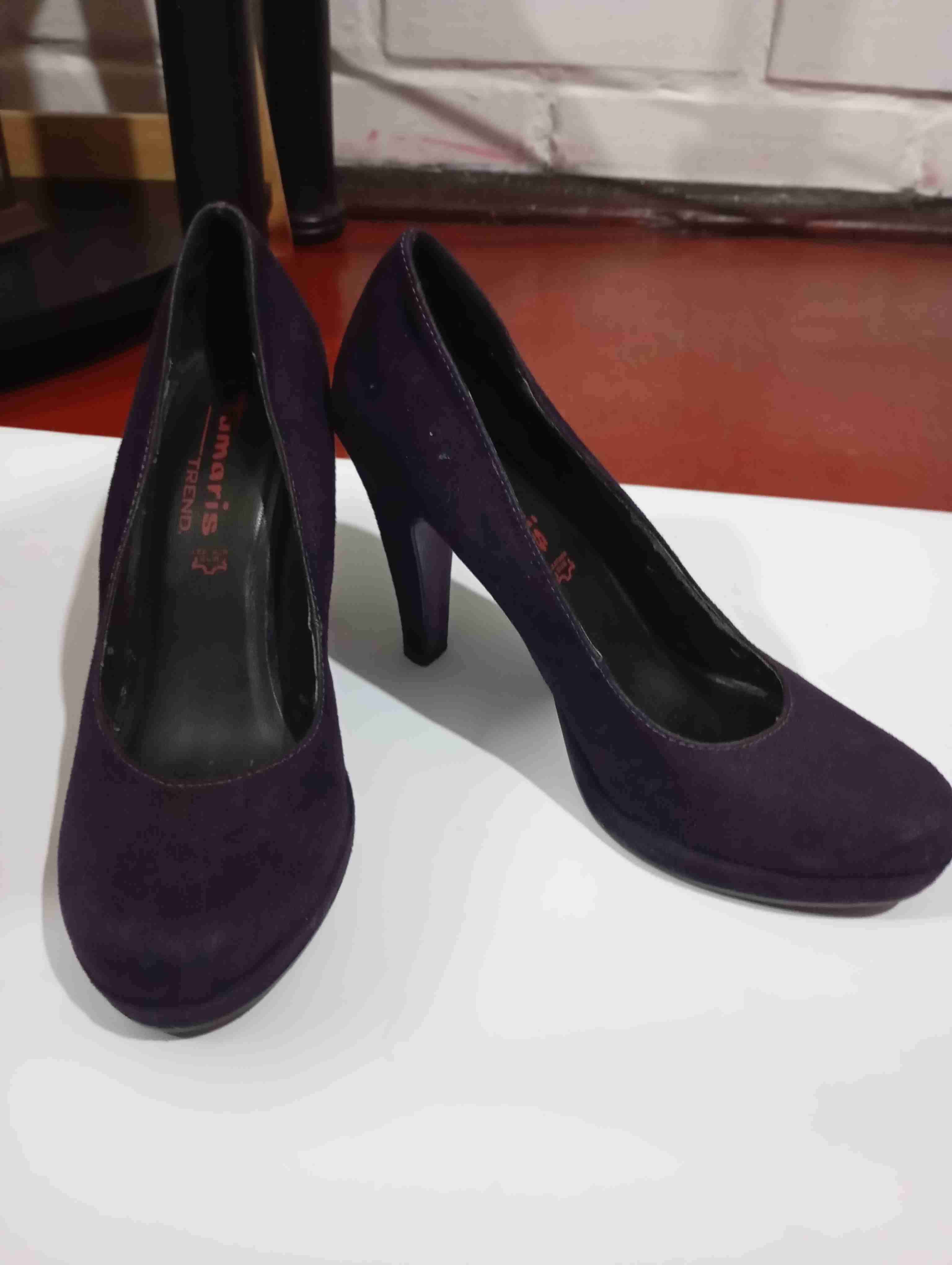 Elegantes zapatos de tacón color púrpura, ideales para ocasiones especiales. Se ven en buen estado.