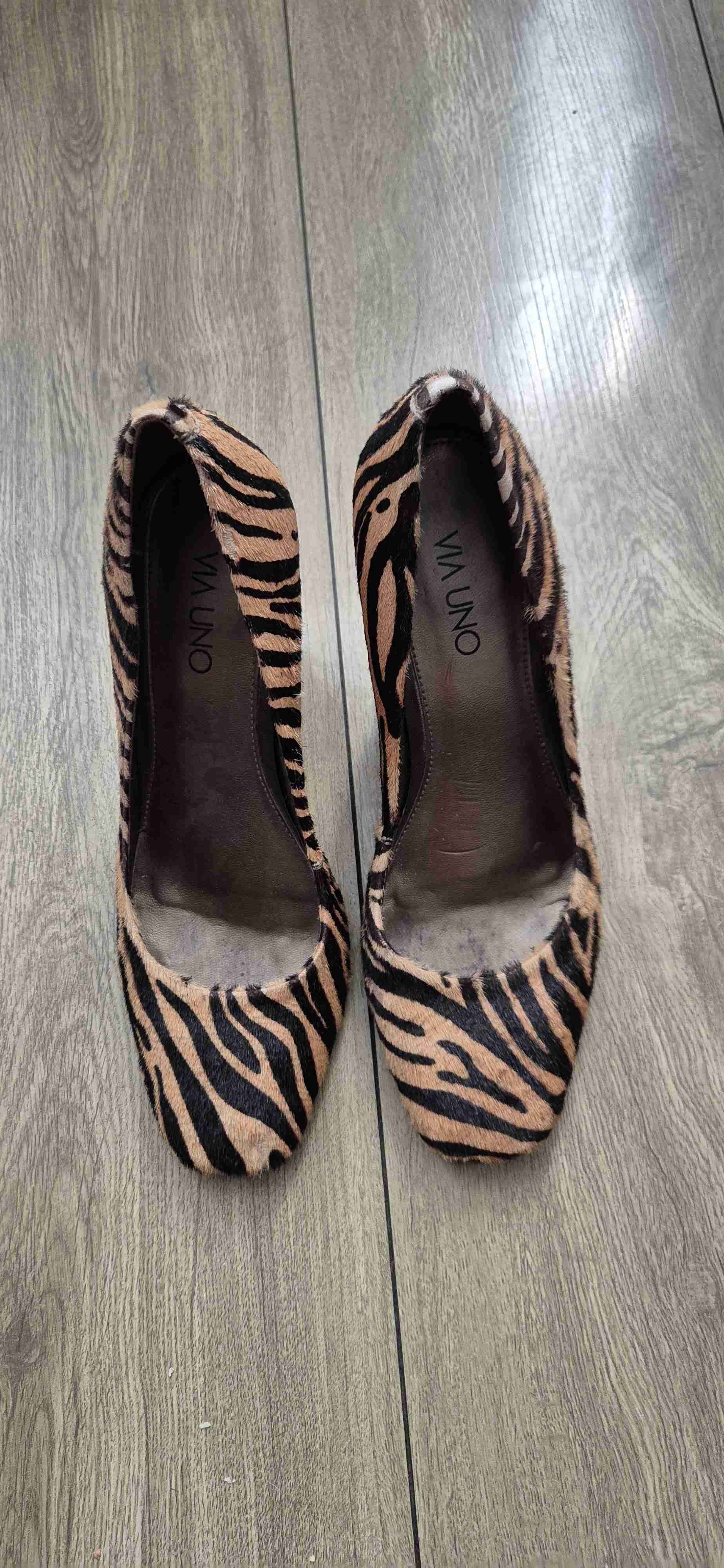 Zapatos de tacón con diseño de animal print, en buen estado. Perfectos para un look atrevido y elegante.