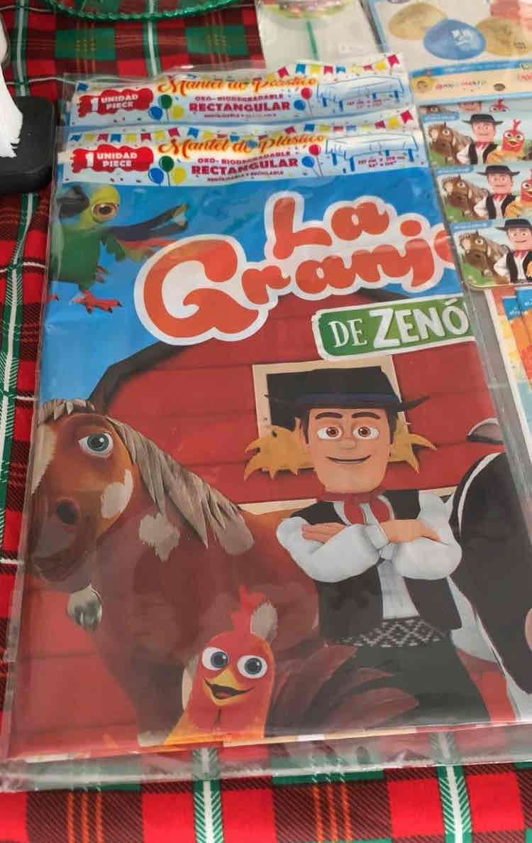 Mantel desechable de plástico con diseño de 'La Granja de Zenón'. Ideal para fiestas infantiles. Nuevo y empaquetado. COTILLÓN CUMPLE AÑOS NIÑO CONTIENE: PIÑATA CORONA VELA 18 VASOS 30 BOLSAS BROCHA RD TORTA 2 Paq. GLOBOS GRANJA 30 PLATOS 2 MANTELES