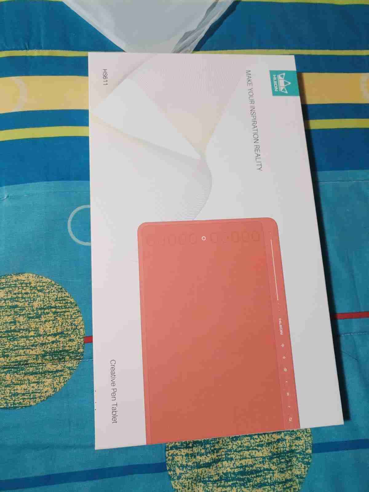 Tableta gráfica creativa Huion HS611 en color coral, ideal para diseño digital. Producto nuevo en su empaque original.