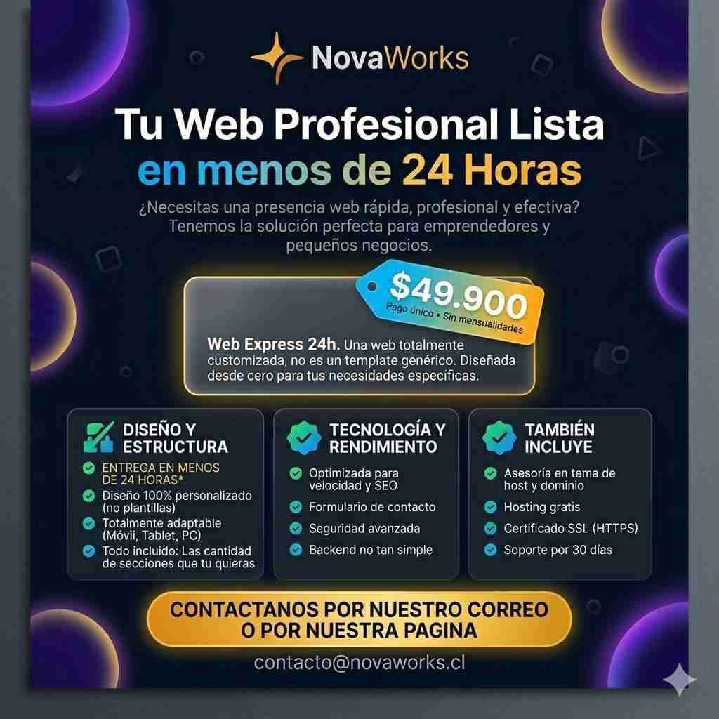 Web profesional lista en menos de 24 horas. Ideal para emprendedores y negocios pequeños.