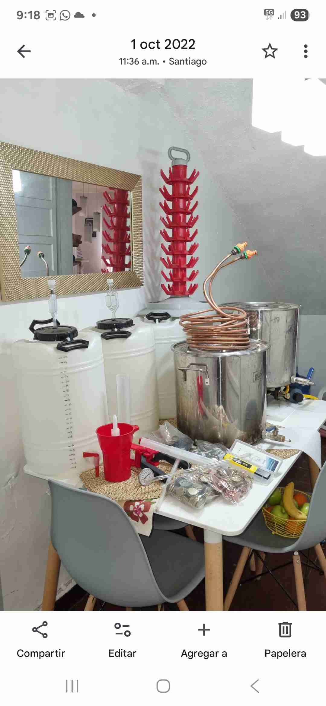 Equipo completo para hacer cerveza en casa, incluye fermentadores y accesorios. Ideal para aficionados a la cervecería. En buen estado, usado poco.