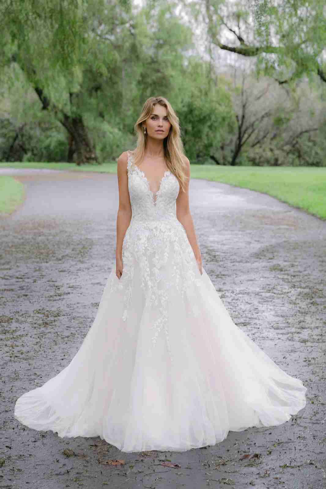 Hermoso vestido de novia con detalles de encaje, ideal para tu día especial. Nuevo sin uso en su empaque original. Es un vestido original de la marca Allure Bridals. Es color ivory, talla 40. Su diseño combina un escote en V profundo con transparencias sutiles, realzado por delicados bordados que estilizan la figura y aportan un toque moderno y femenino. El cuerpo entallado fluye suavemente hacia una falda de tul liviana y vaporosa, creando un movimiento espectacular al caminar. Los apliques de encaje bordado se distribuyen de forma orgánica, aportando textura y un aire romántico sin sobrecargar el diseño. Perfecto para matrimonios al aire libre, jardines o celebraciones con un estilo natural y sofisticado.