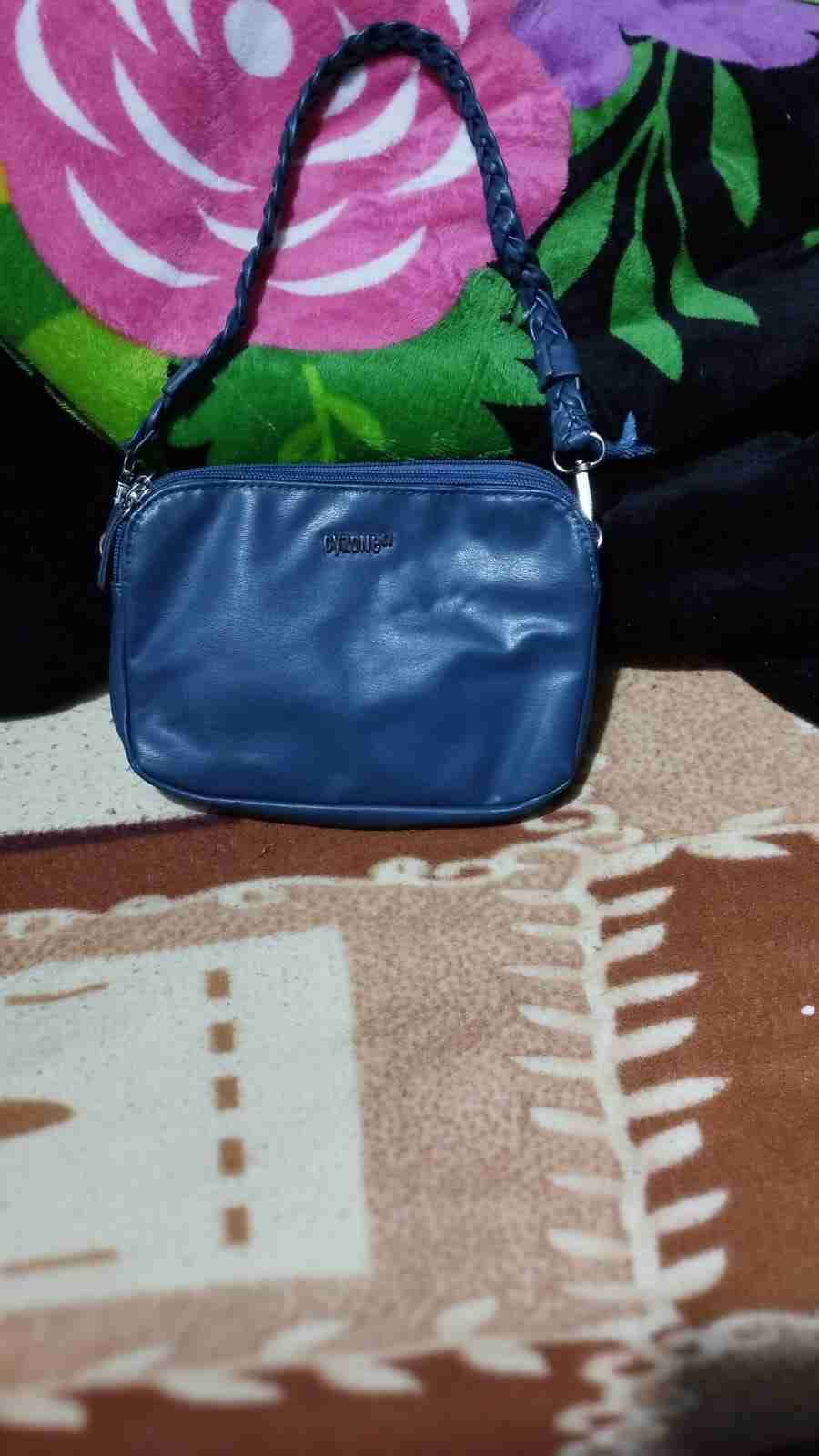 Cartera en buen estado ideal para el uso diario. Color azul elegante con correa trenzada.