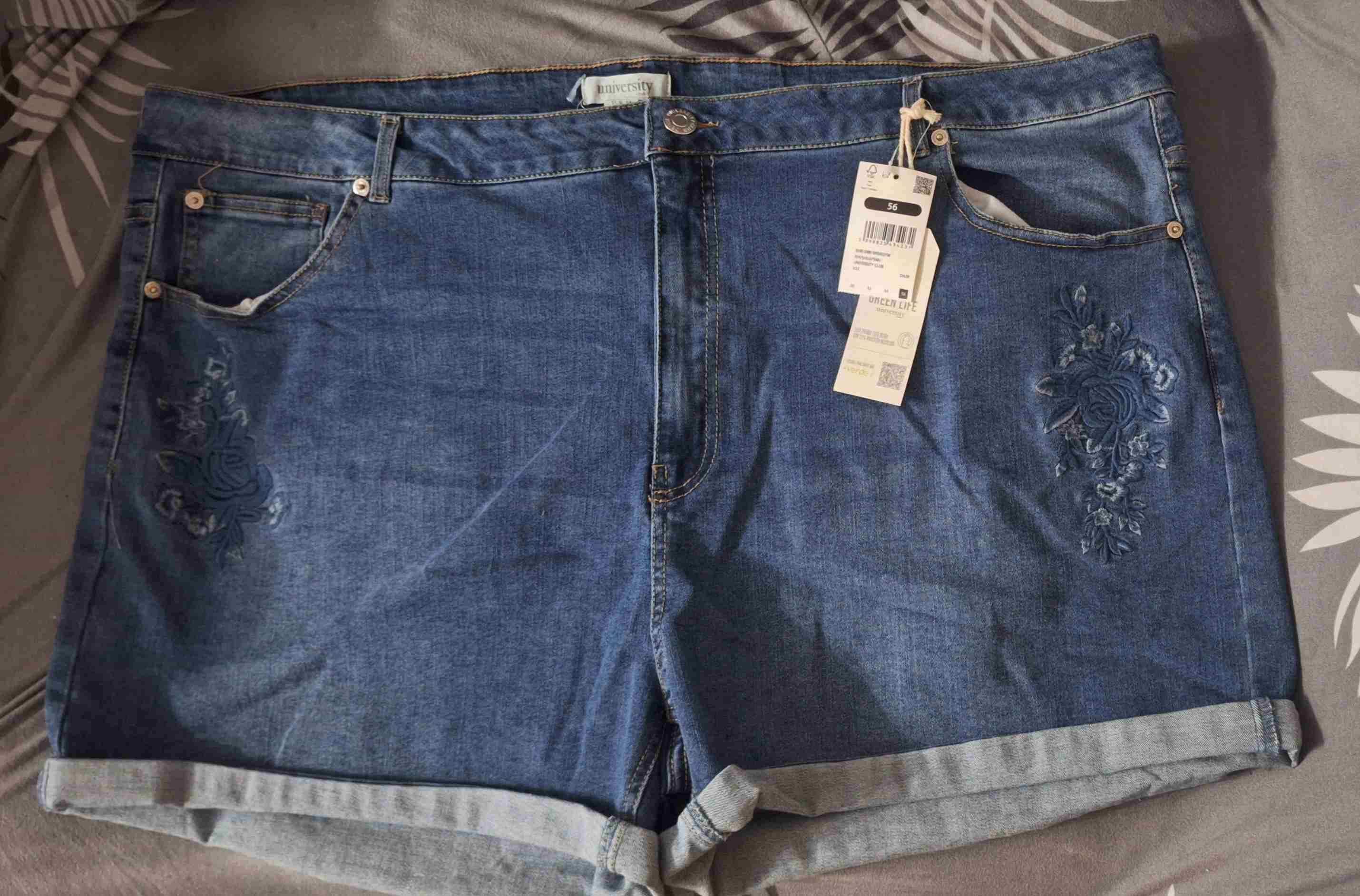 Shorts de mezclilla azul con detalles bordados, estilo casual perfecto para el verano. En buen estado.talla 54