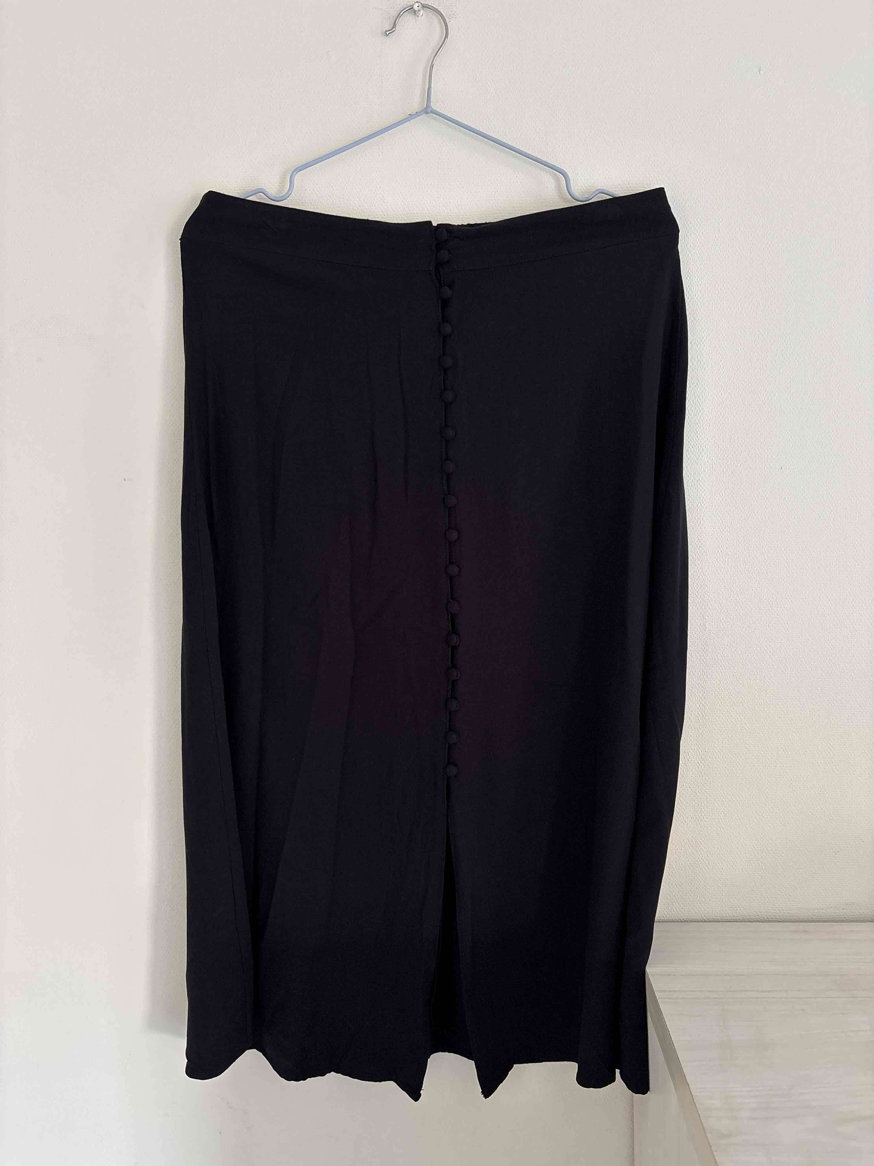 Elegante falda negra con botones frontales, perfecta para ocasiones formales. Buen estado.
