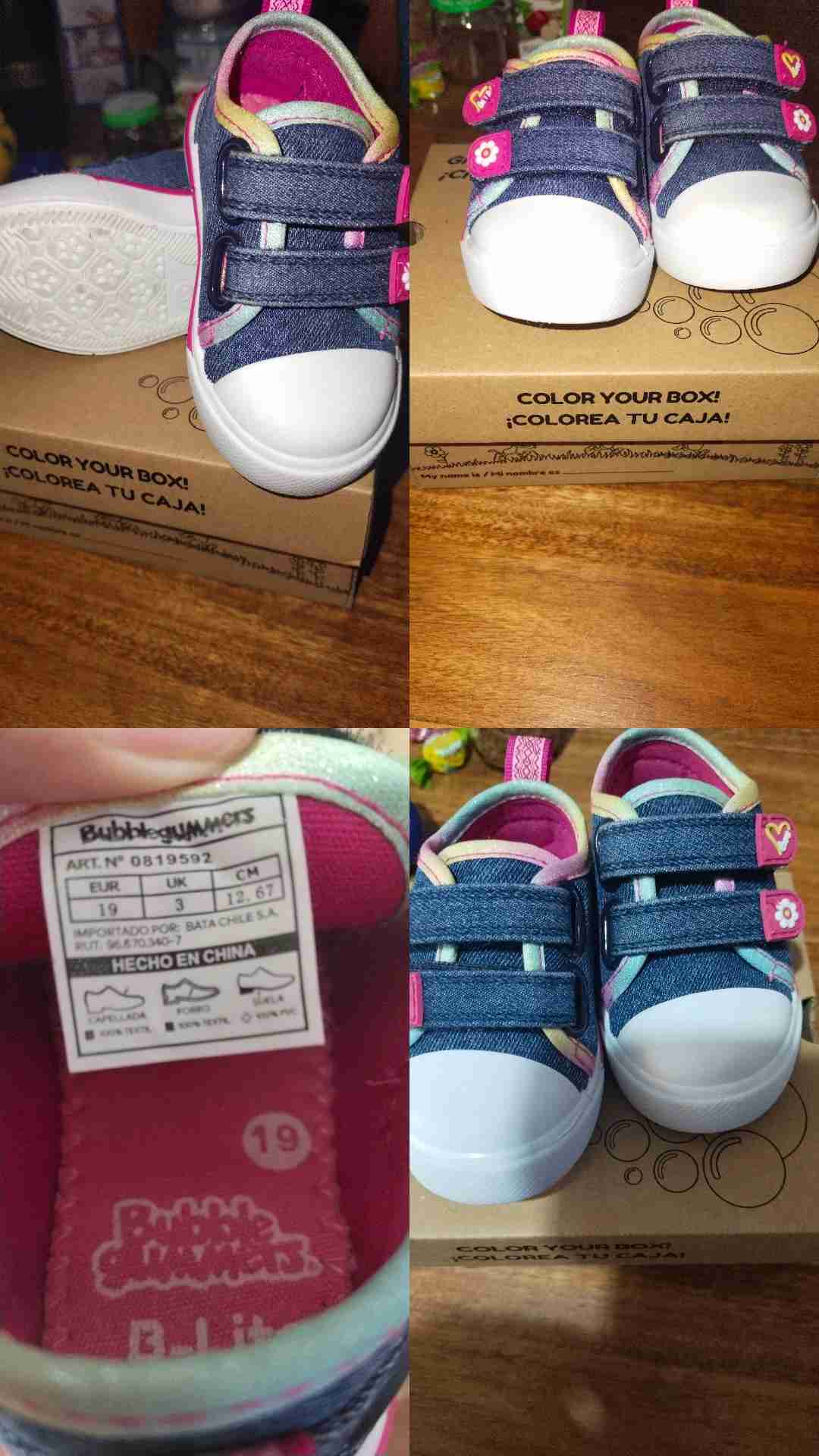 Lindas zapatillas tipo denim para niñas, con velcro y detalles de flores. En excelente estado.