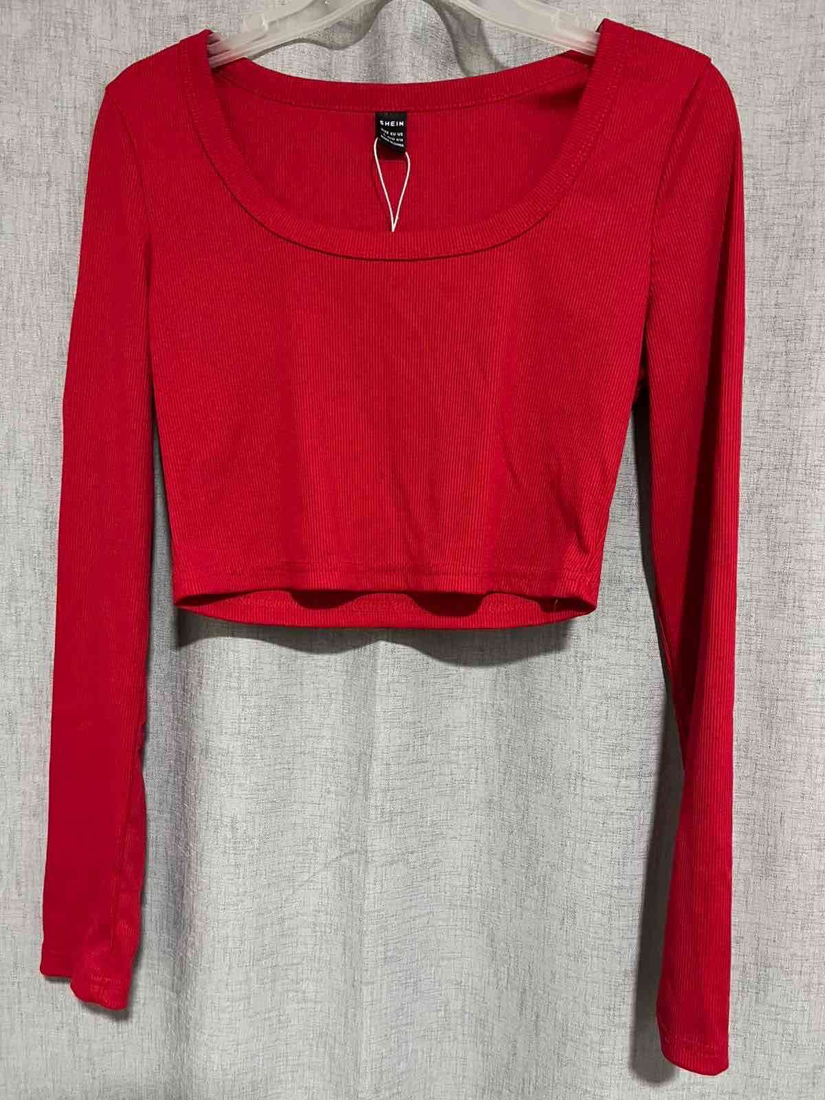 Polera roja manga larga, ideal para primavera. En buen estado, con estilo casual perfecto para el día a día.