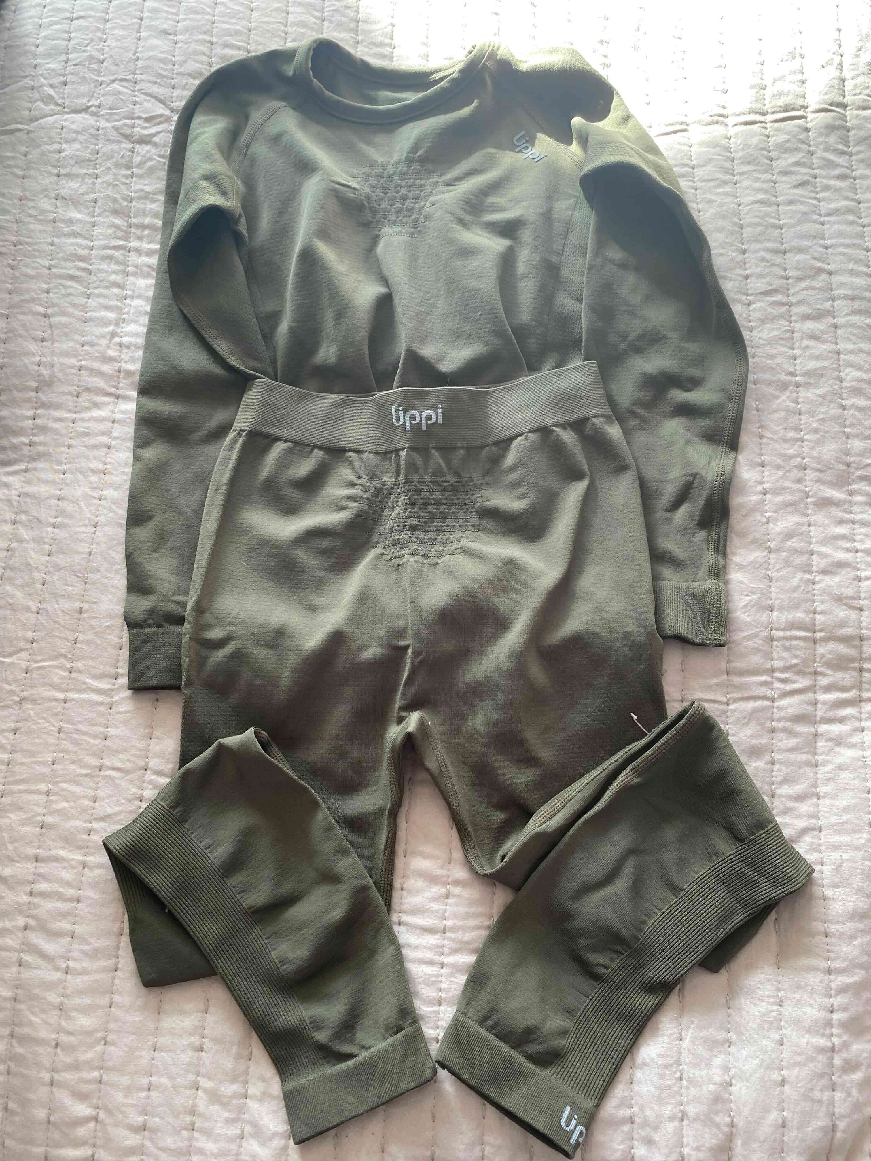 Ropa interior térmica de color verde, ideal para el frío. En buen estado, sin señales de uso significativo.