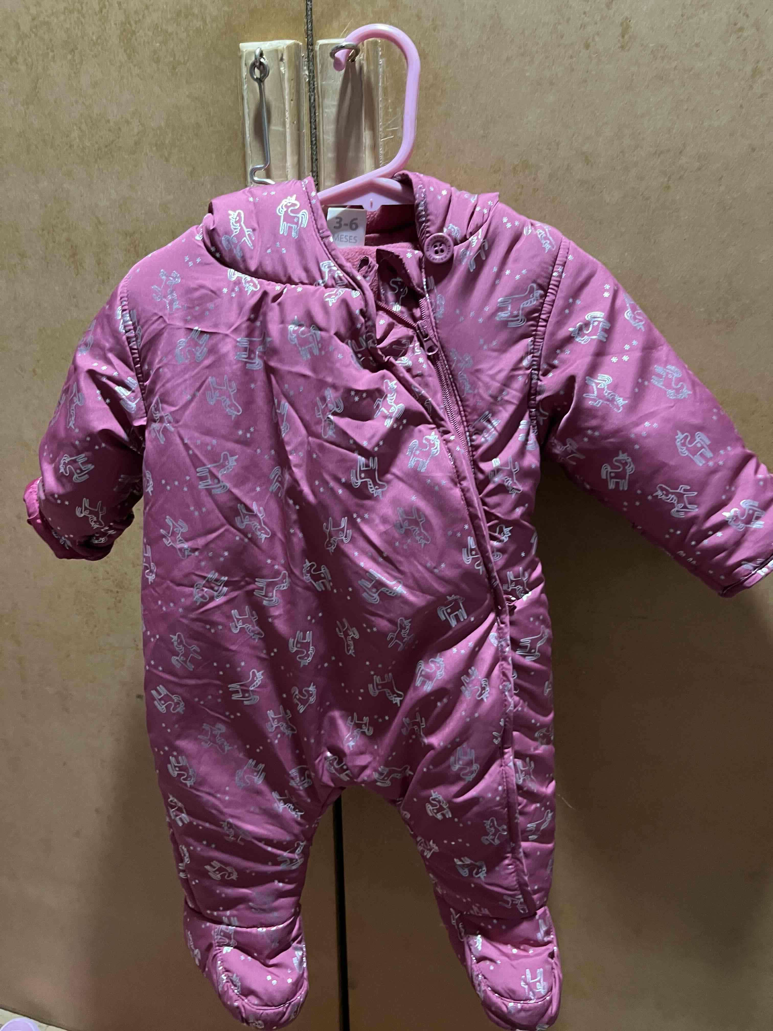 Cómodo enterito rosado con estampado, ideal para abrigar a bebés de 3 a 6 meses marca baby harvest . En buen estado y listo para usar.