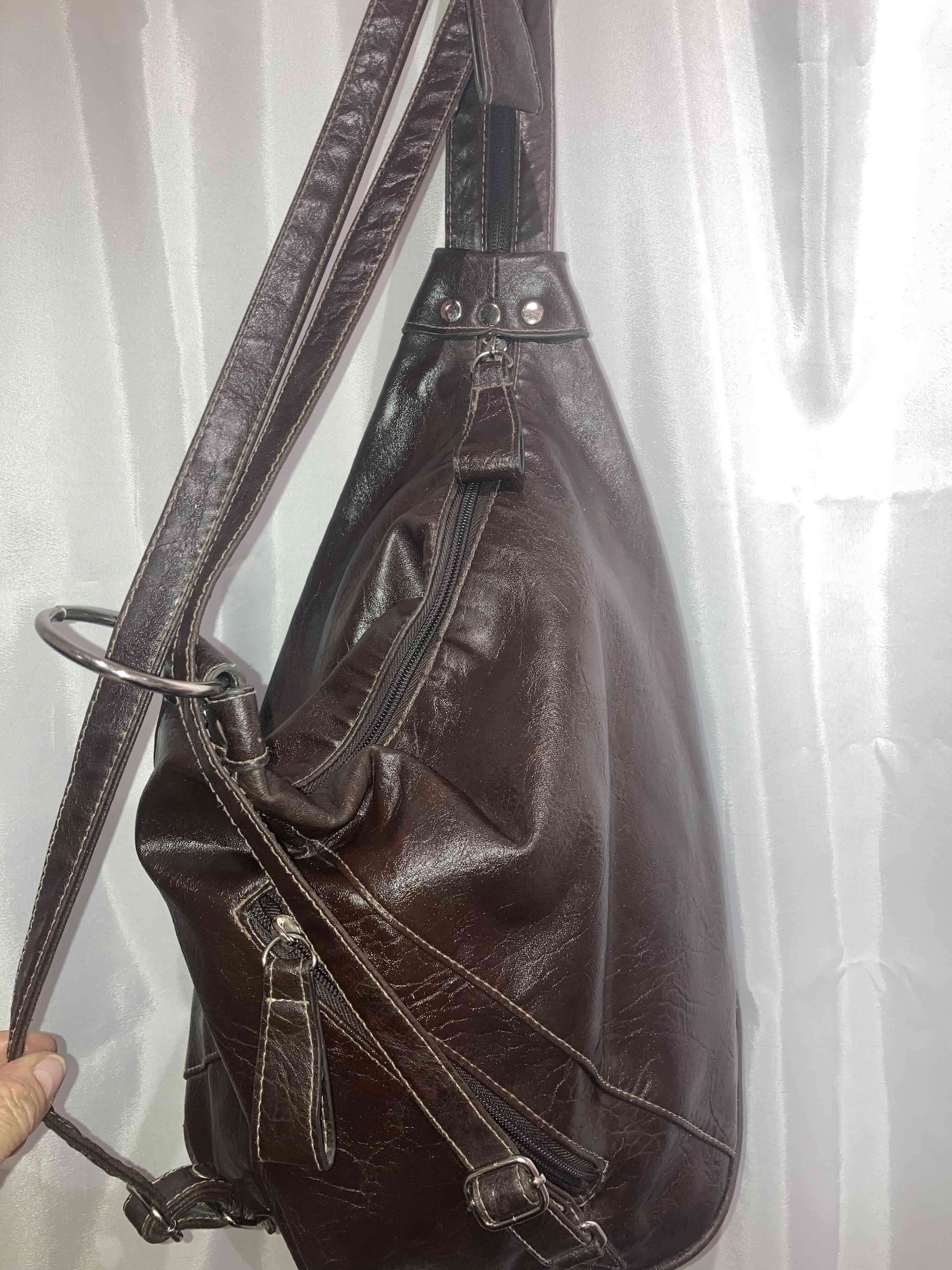 Mochila elegante de cuero color café. Ideal para uso diario. Buen estado general con signos leves de uso.