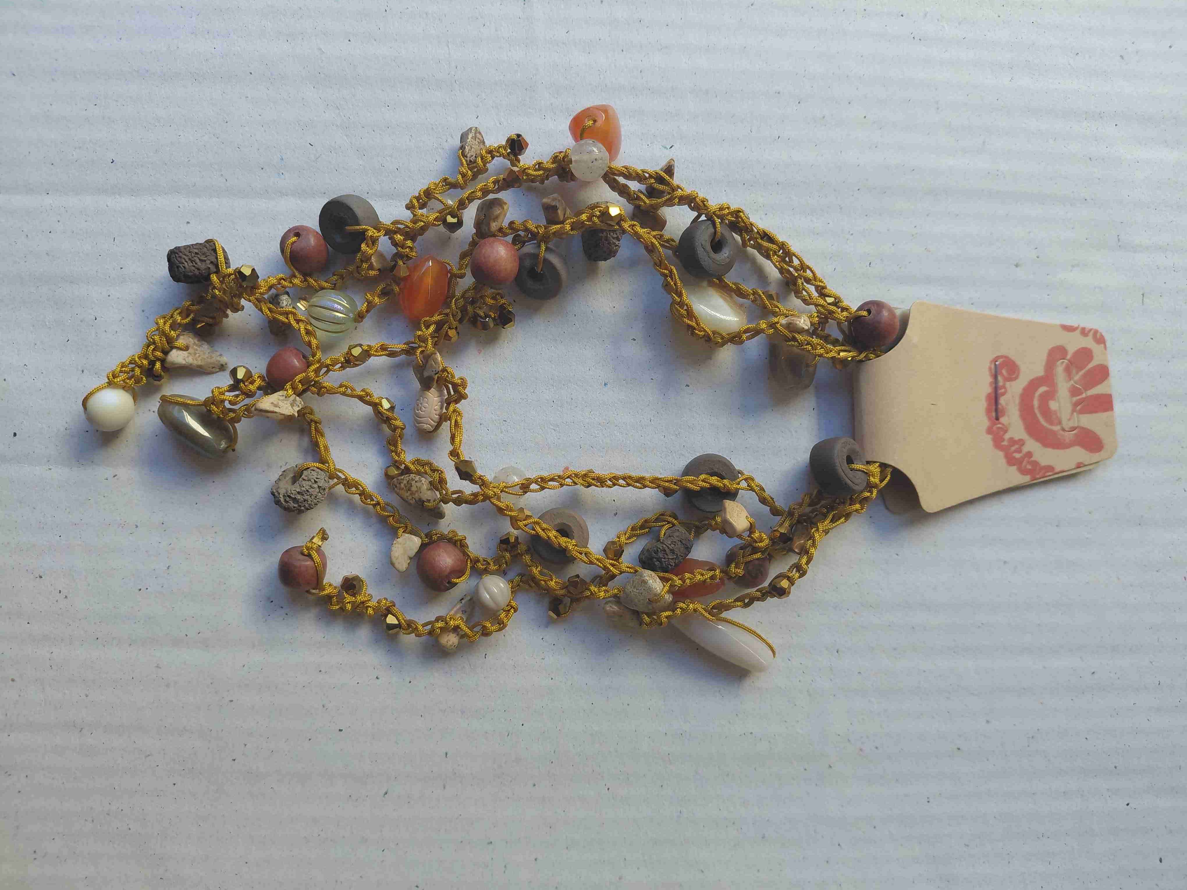 Collar hecho a mano con cuentas y piedras de colores. Perfecto para un look bohemio y relajado.