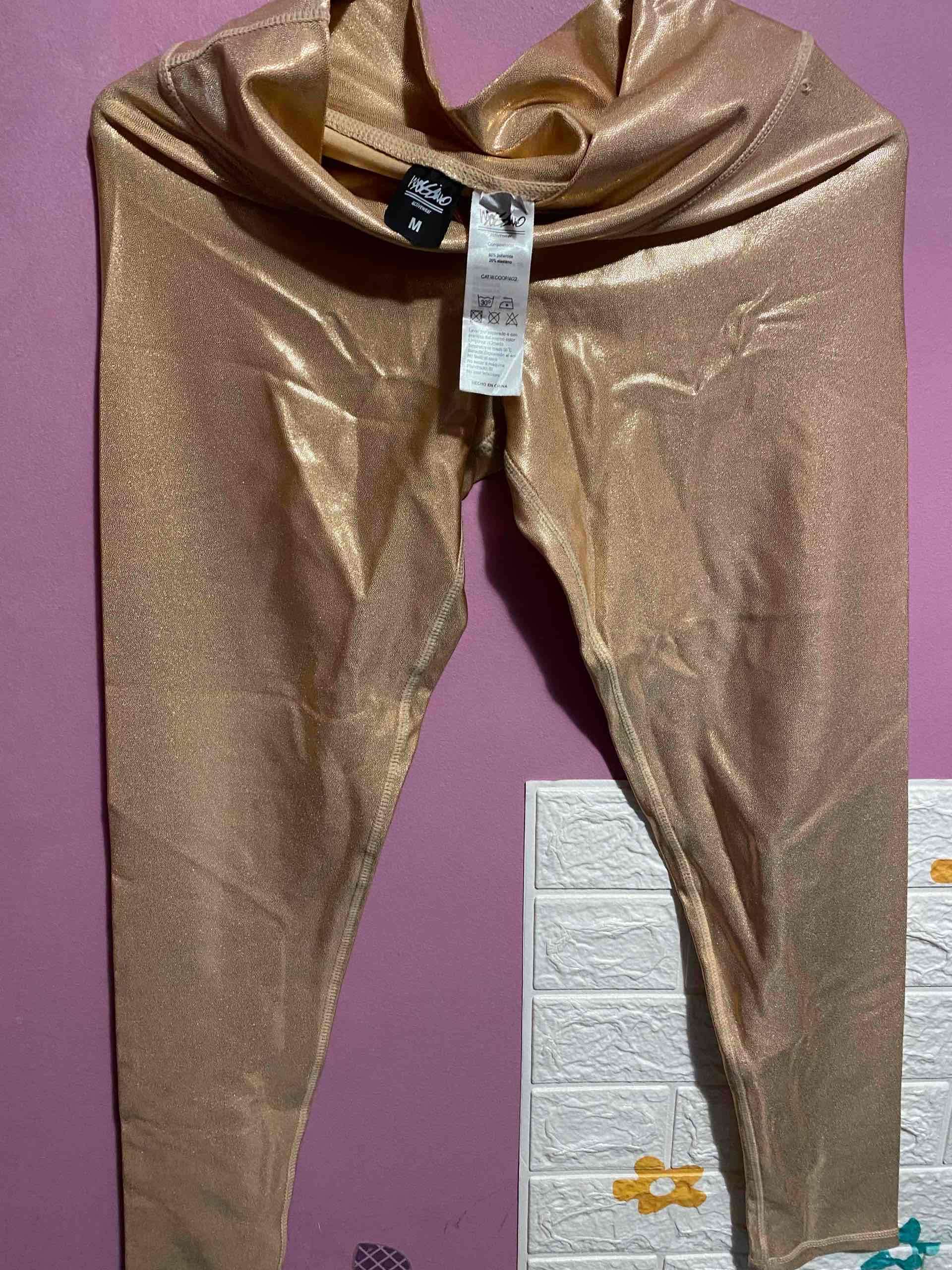 Leggings dorados con acabado brillante, perfectos para eventos especiales o uso diario. En muy buen estado. (1 postura)