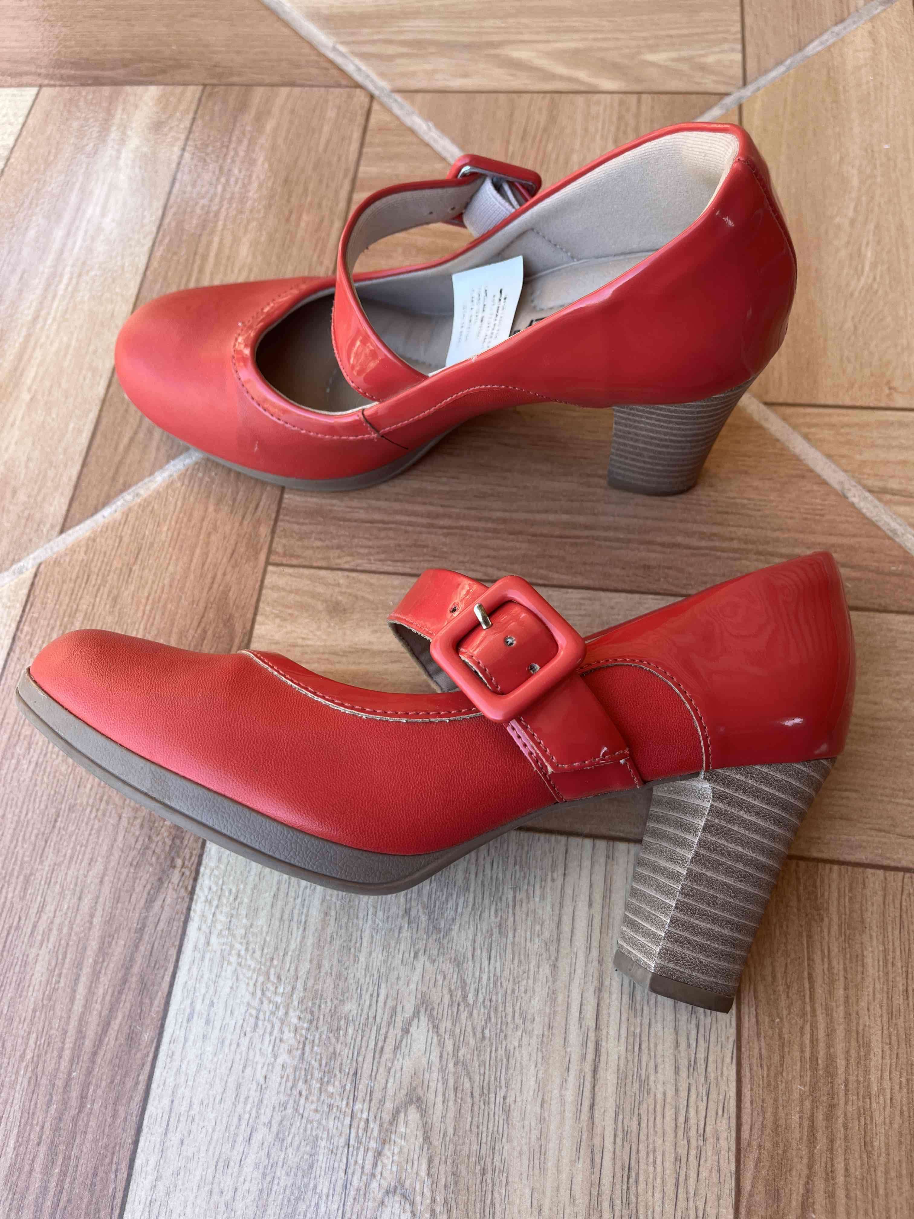 Zapatos de color rojo, diseño clásico con hebilla. Usados pero en buen estado sin daños visibles. Perfectos para un look casual o formal.