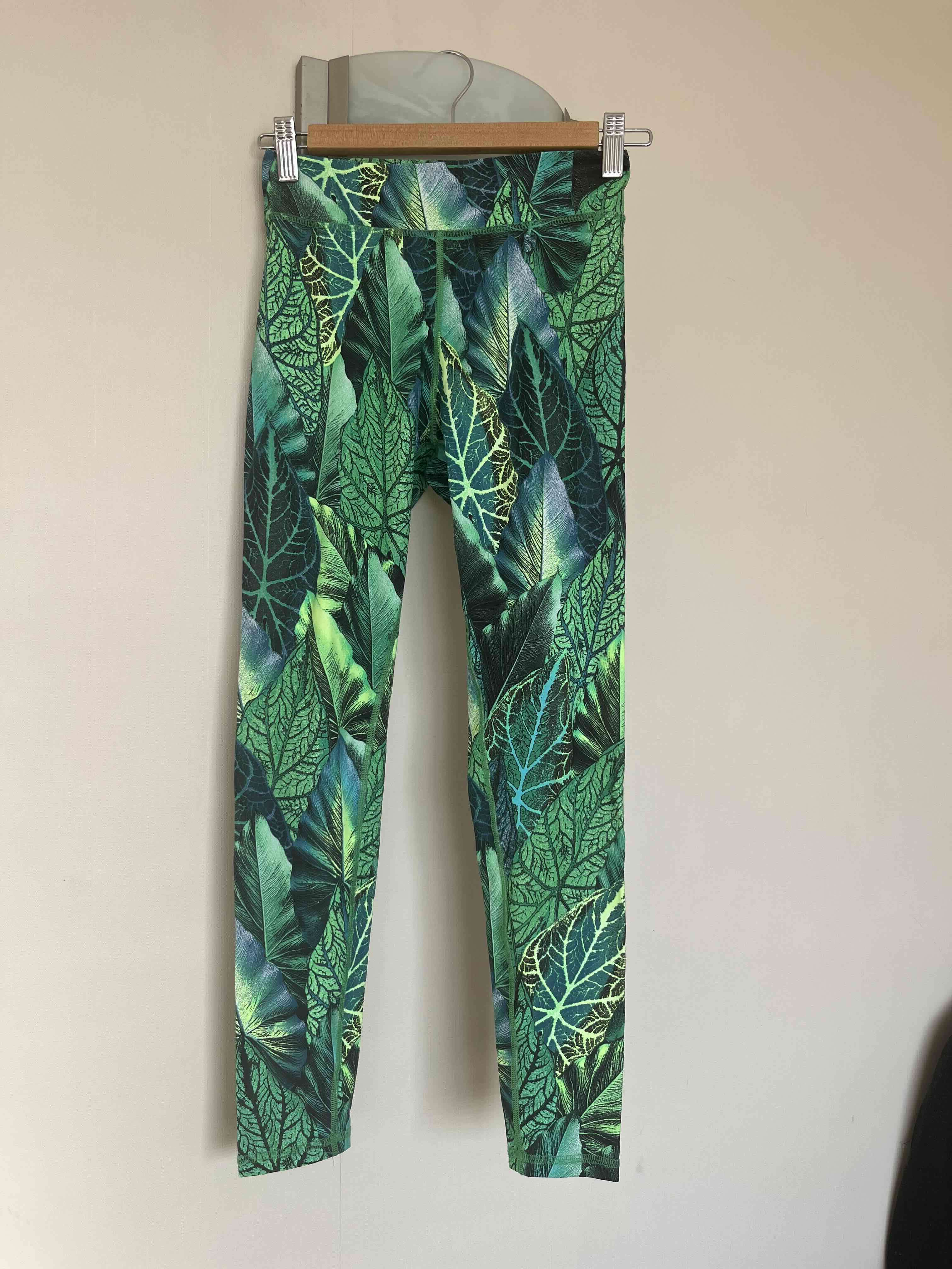 Leggings deportivos con diseño de hojas verdes. Perfectos para yoga o gimnasio. Buen estado.