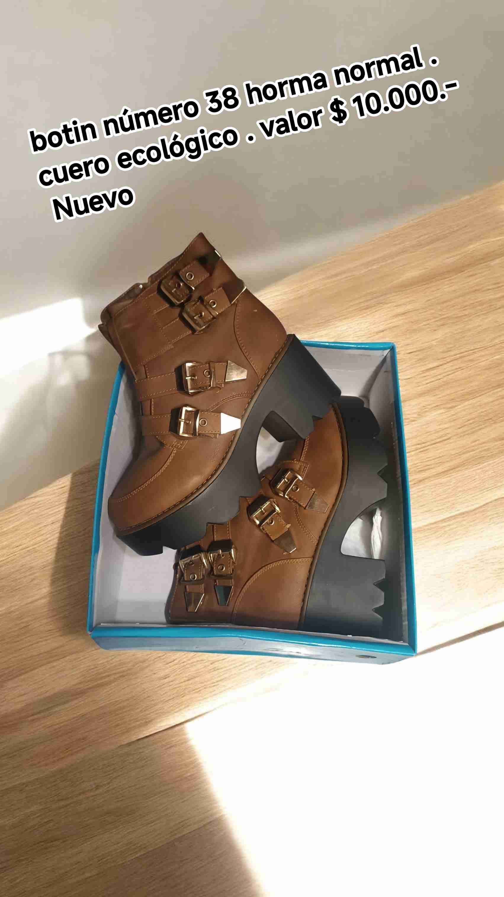 Botines color marrón en cuero ecológico, número 38. Perfectos para un look casual o de oficina. Totalmente nuevos.