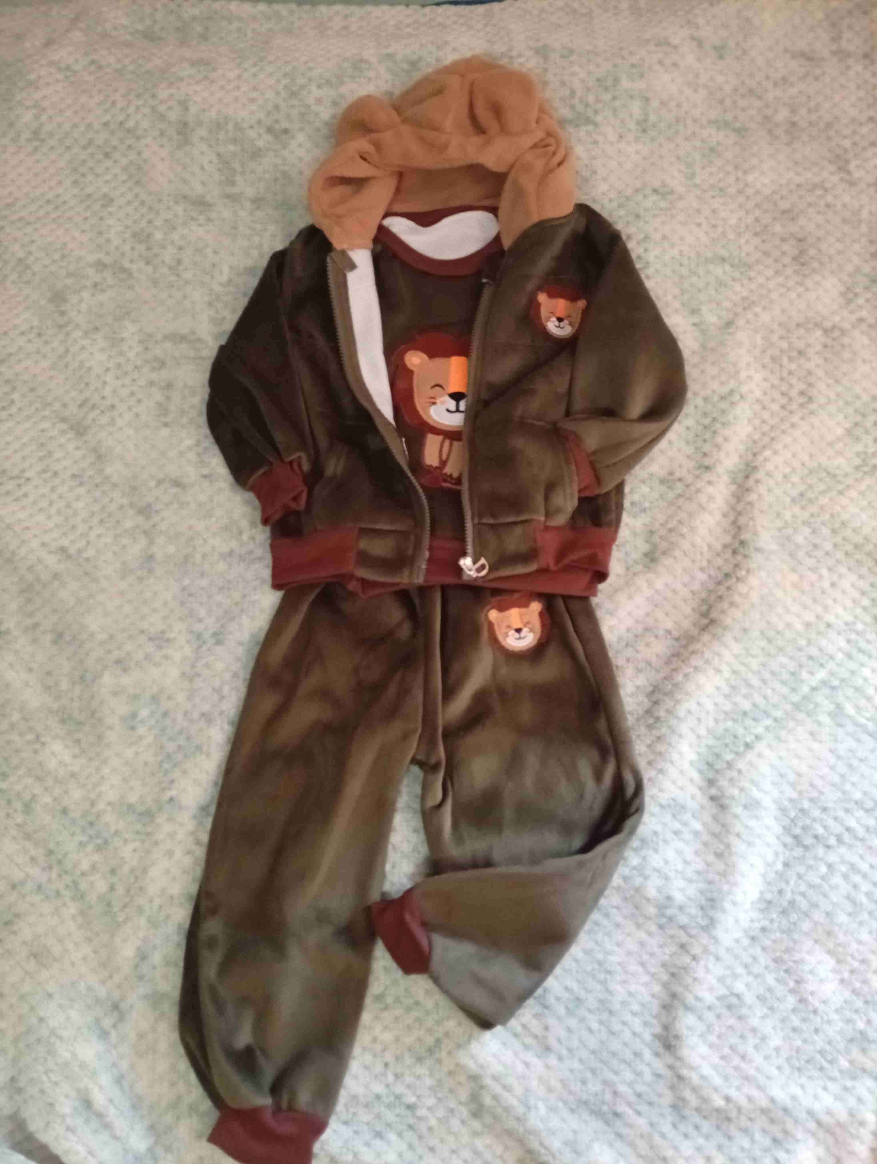 Conjunto para niño de color café con motivo de león. Ideal para días fríos. Incluye chaqueta. Talla 4