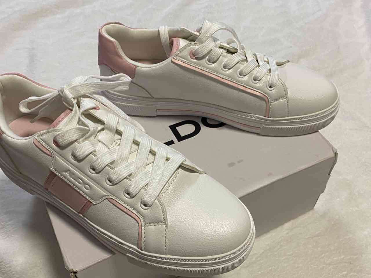 Zapatillas casuales en buen estado, blancas con detalles rosados. Perfectas para uso diario.