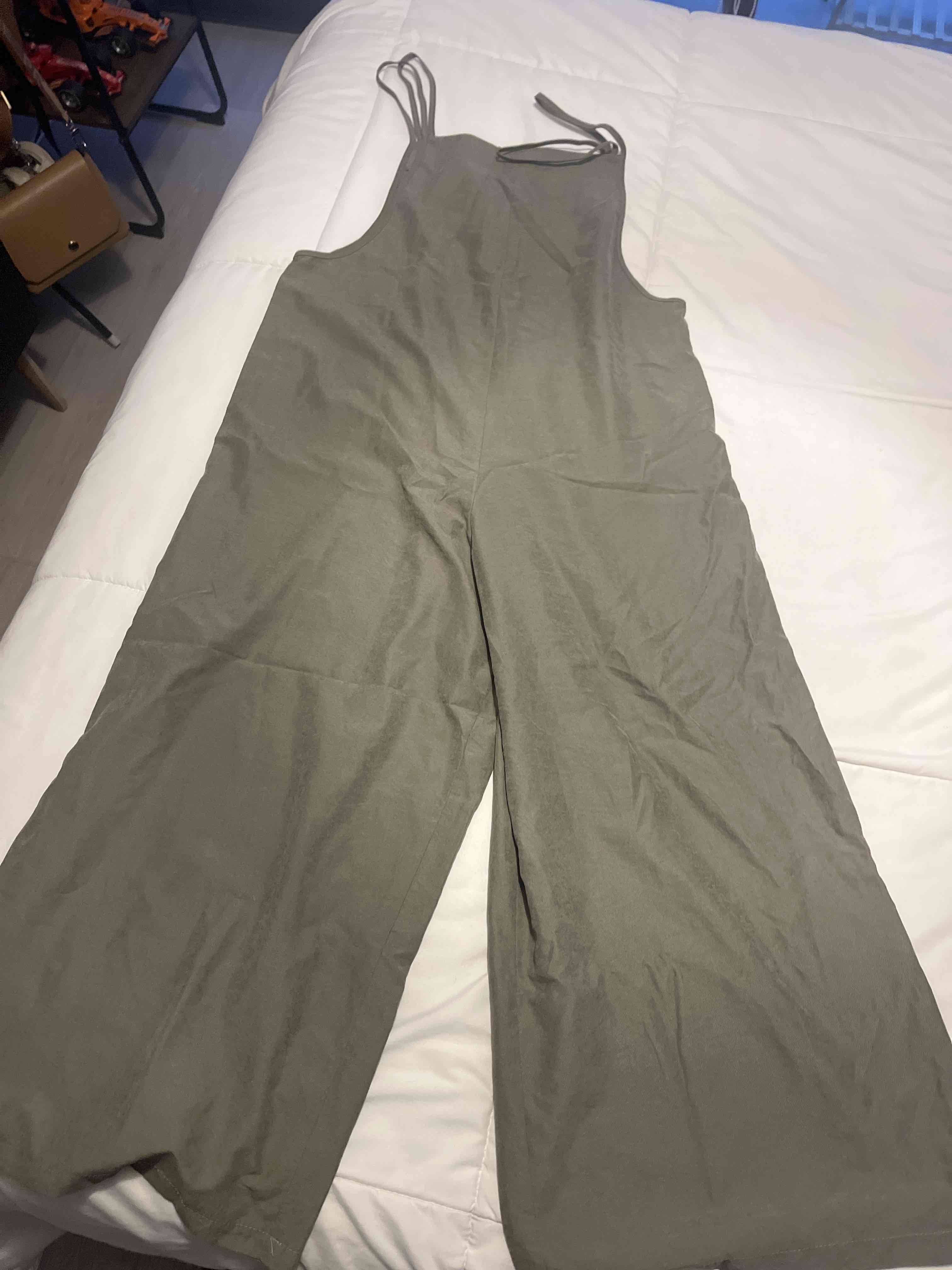 Cómodo enterito de tela suave en color gris, ideal para el verano. En buen estado, perfecto para salidas informales.